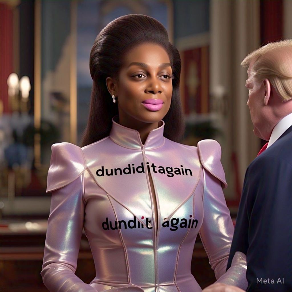 [Final Shot: Trump sitting there in deep thought, clearly ready to make his move. Antoinette walks off into the future, the RealityDundidItAgain logo appearing with futuristic sounds and visuals.]