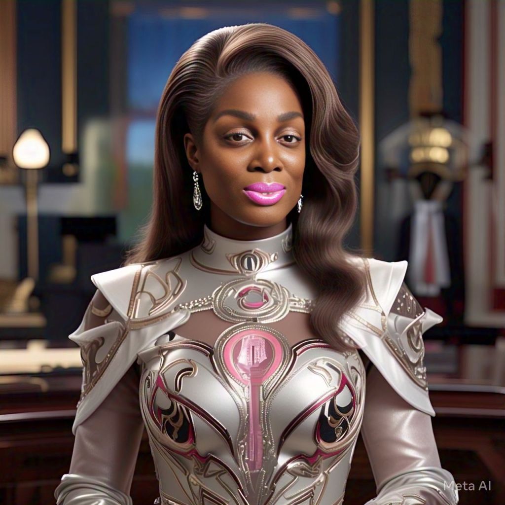 [Opening Scene: Antoinette is sitting at a futuristic desk, wearing a high-fashion suit, while sipping tea from a holographic cup. She’s calm, collected, but you can feel the energy of someone who’s about to drop some wisdom. She gestures to a hologram that reveals President Trump on a big screen in front of her.]