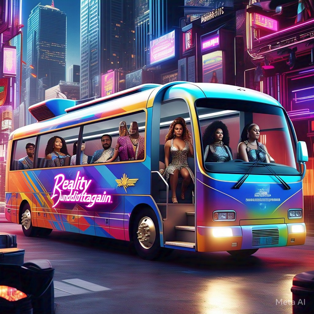 [Scene opens with Antoinette driving a futuristic, chrome bus with 12K monitors and incense blowing from the vents.]