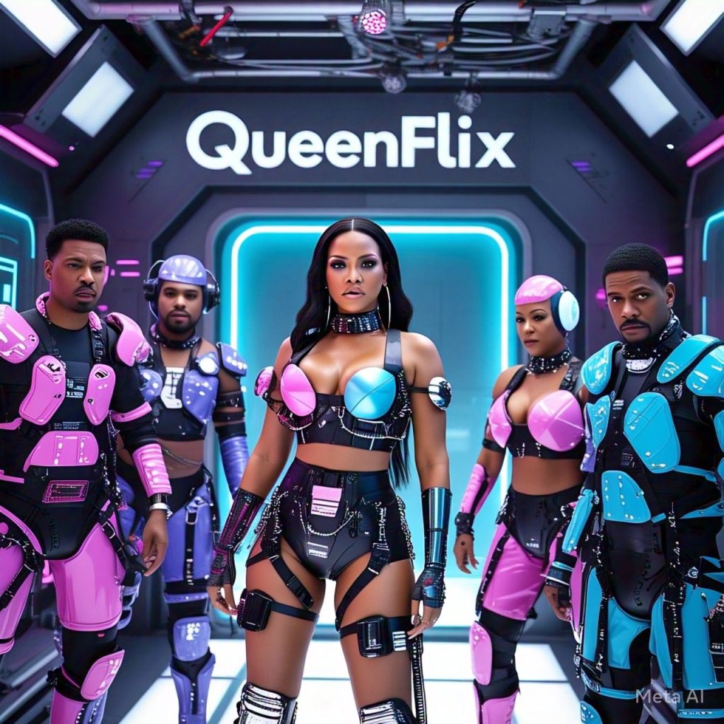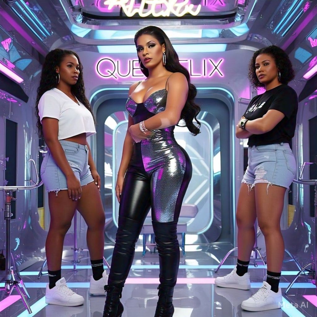 Scene Location: QueenFlix’s RealityDundidItAgain extravagant futuristic music video shoot. Bright neon lights. Neon pink and green grids. It’s futuristic yet hood chic. Antoinette’s vision is in full effect. The room is buzzing with excitement.