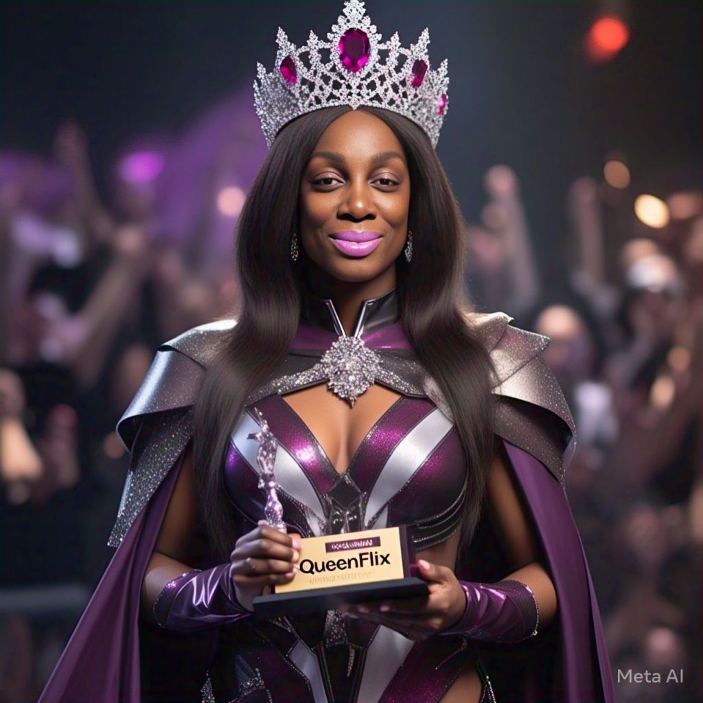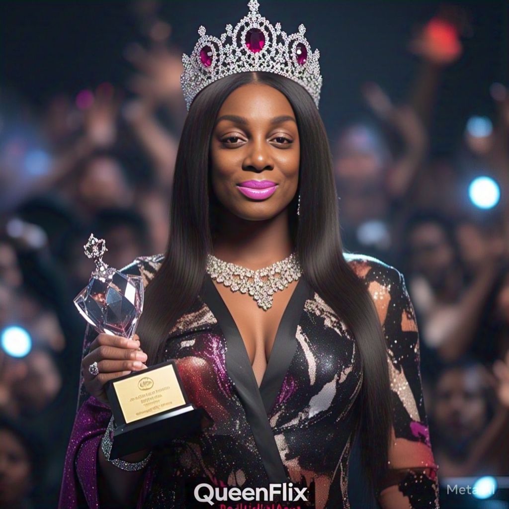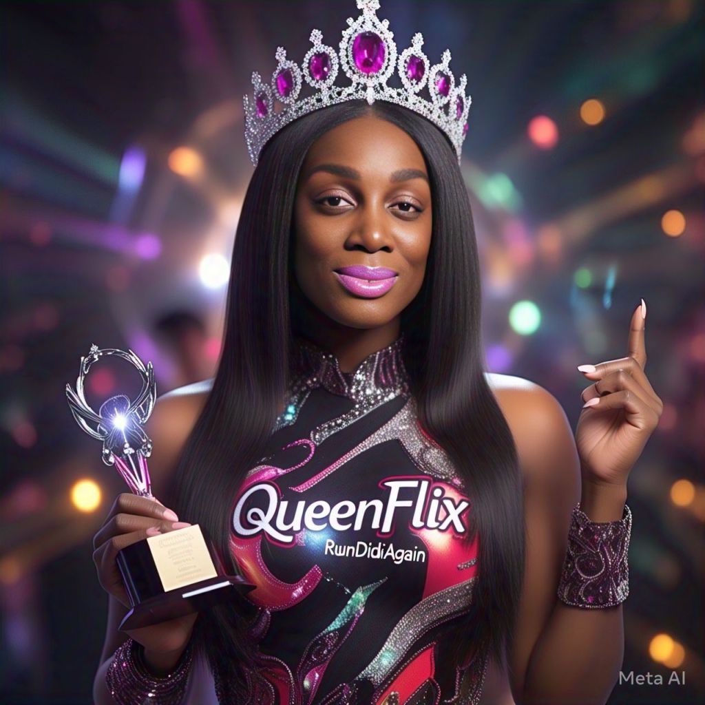 [Scene opens: Red carpet at the Queenflix Awards. Paparazzi flashing. Antoinette steps out in a blinding gold futuristic gown. Taraji strutting beside her, Tisha dancing behind her, and Foxy Brown in full director mode with ASL interpreter at her side.]