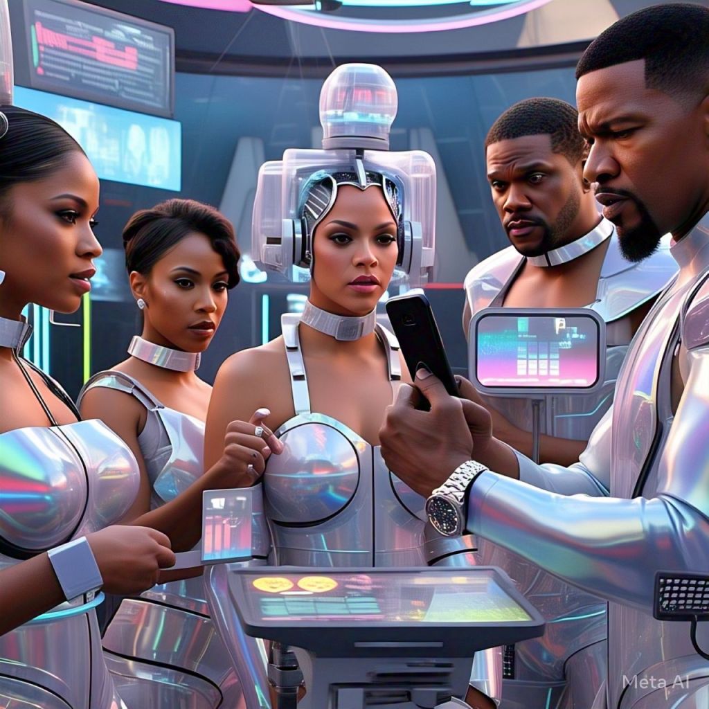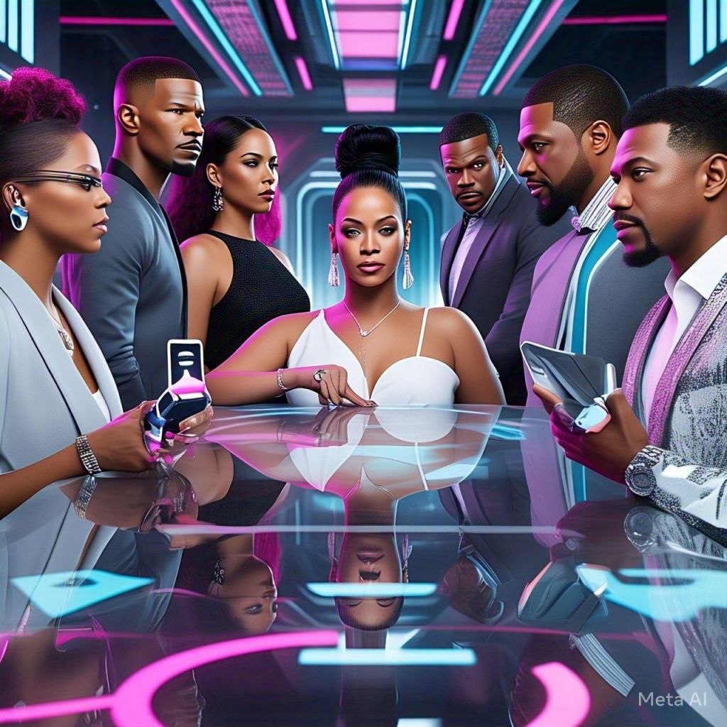 A Queenflix alert flashes — “TYLER PERRY x ANTOINETTE – SECRET SPACE TECH DEAL TO WAKE COMA PATIENTS WITH ROBOT SHOWS?!”