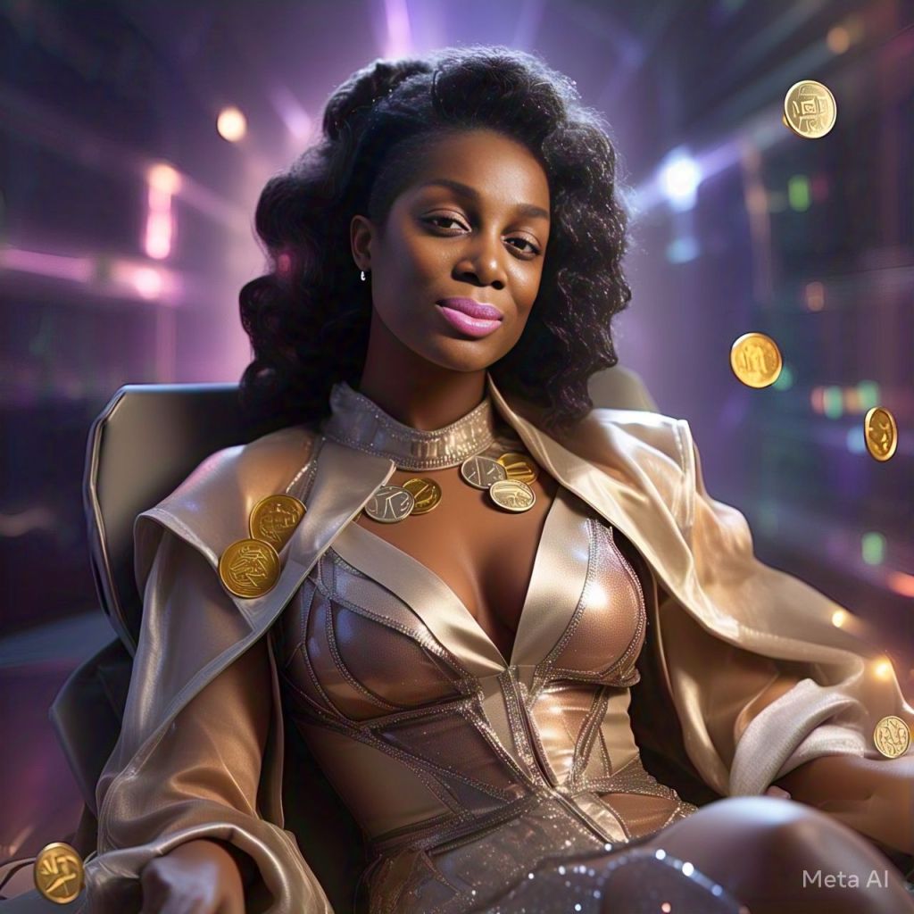Antoinette sits high on her glowing crystal throne. Her RC Coin glows gold. The crowd of ancestors is now joined by spirit animals, all watching the showdown. A saxophone plays a sexy “this about to be a moment” tune.