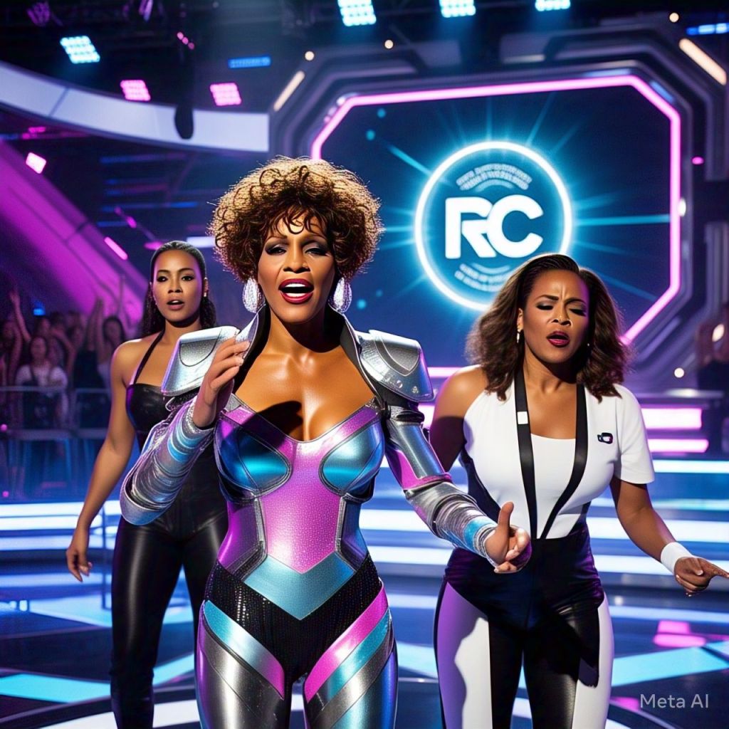 Suddenly, the chandelier dims… the clouds part… and the VOCAL LEGENDS appear, dressed in white and sparkling like they own time: