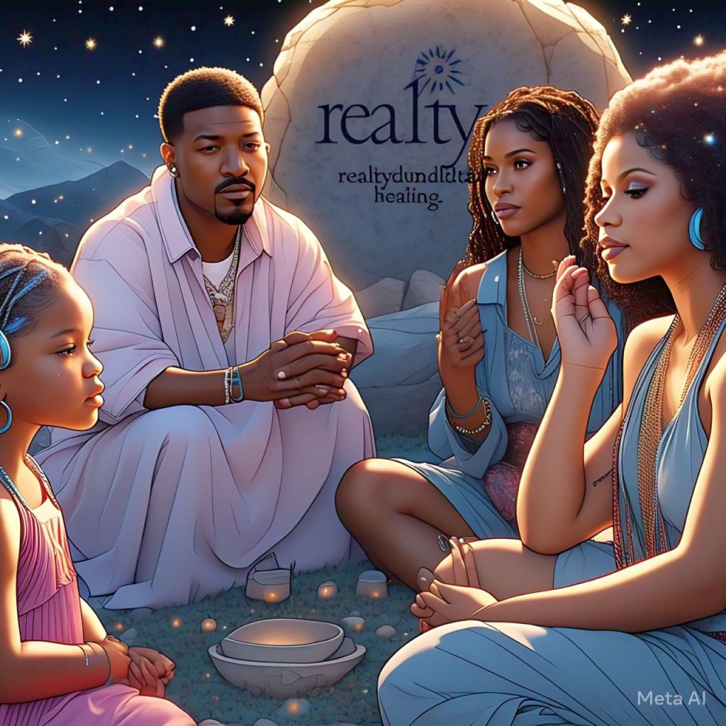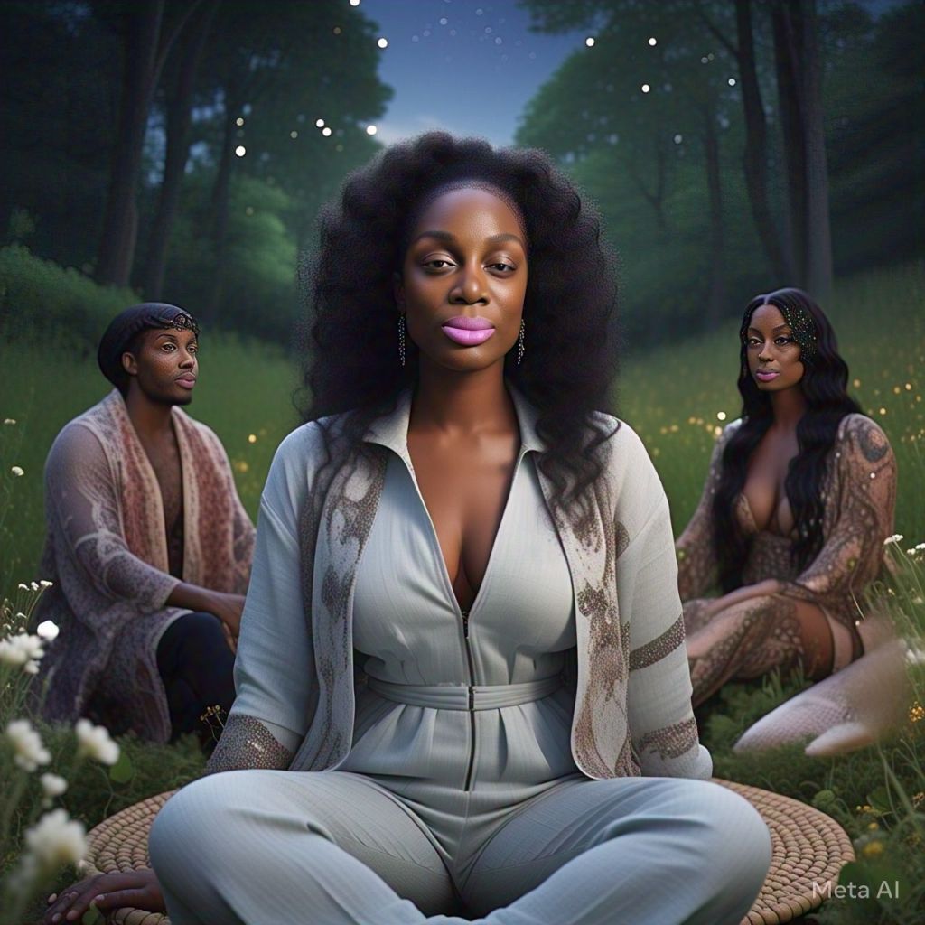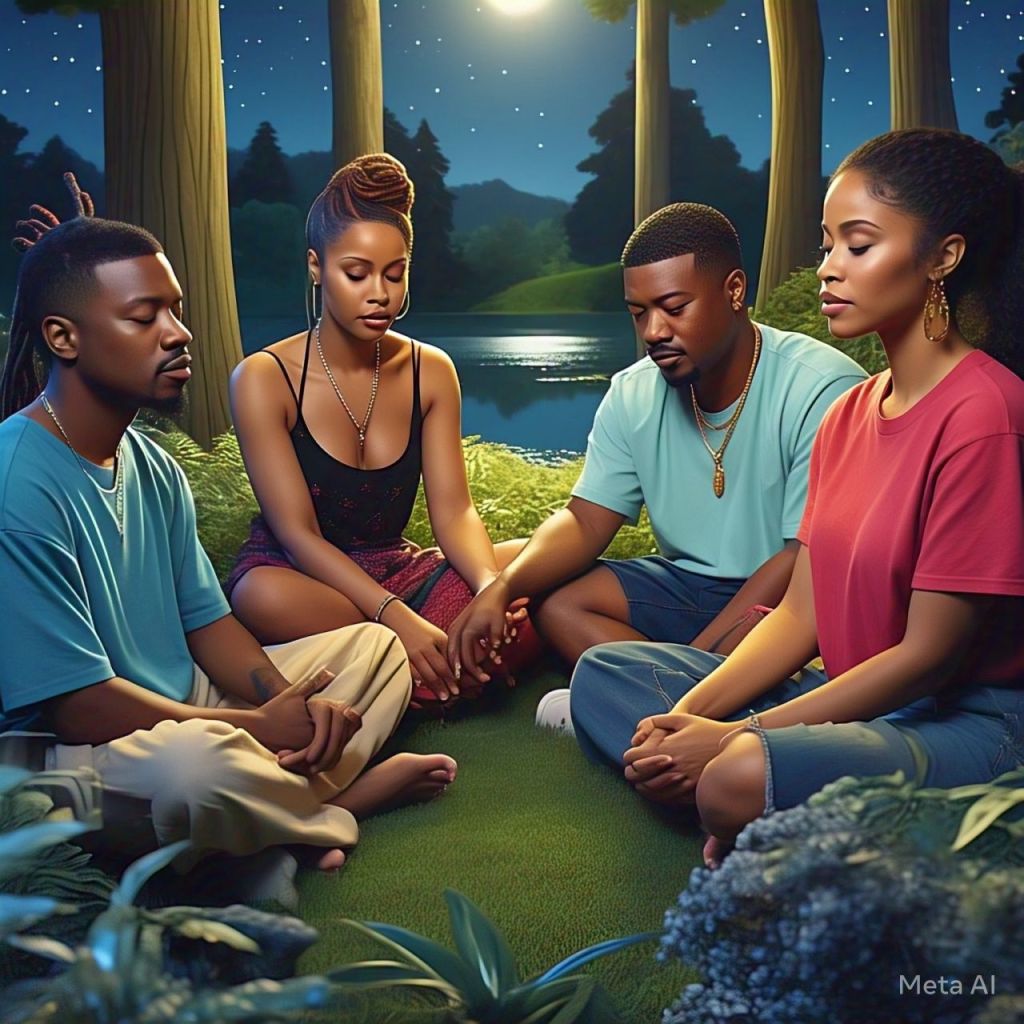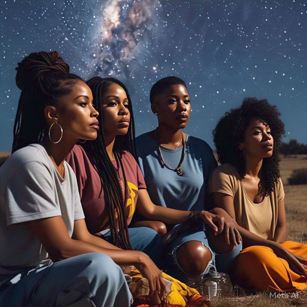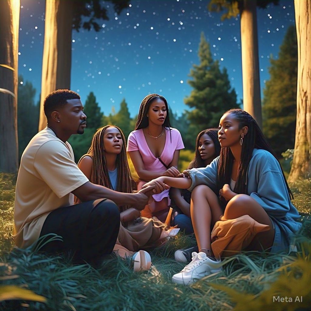 Ant, Ray J, Natalie, Erykah, Missy, and Cardi B sit in a circle under the stars.