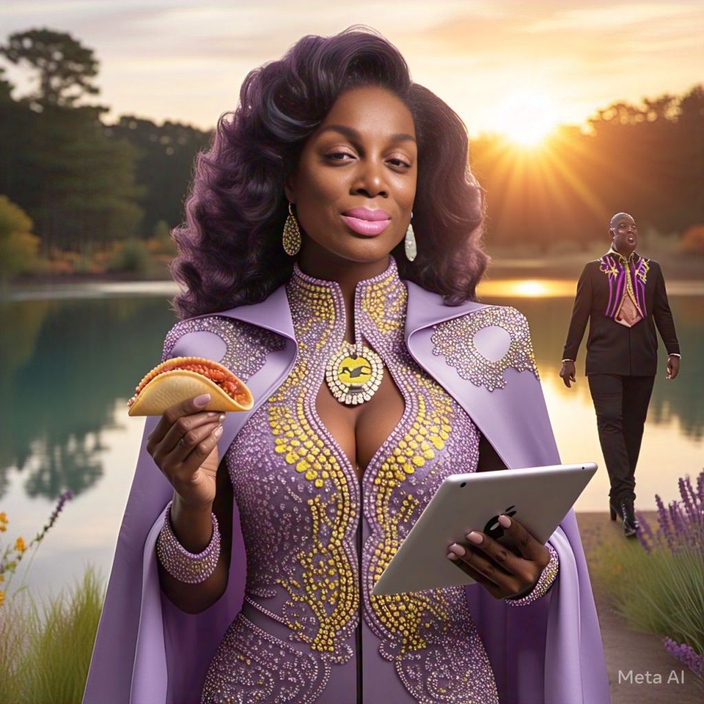 Ant walks off into the sunset, holding a red snapper taco and her iPad with the RC Coin logo. Mike Epps and Smokey Squarez walk behind her, singing a ratchet gospel remix: