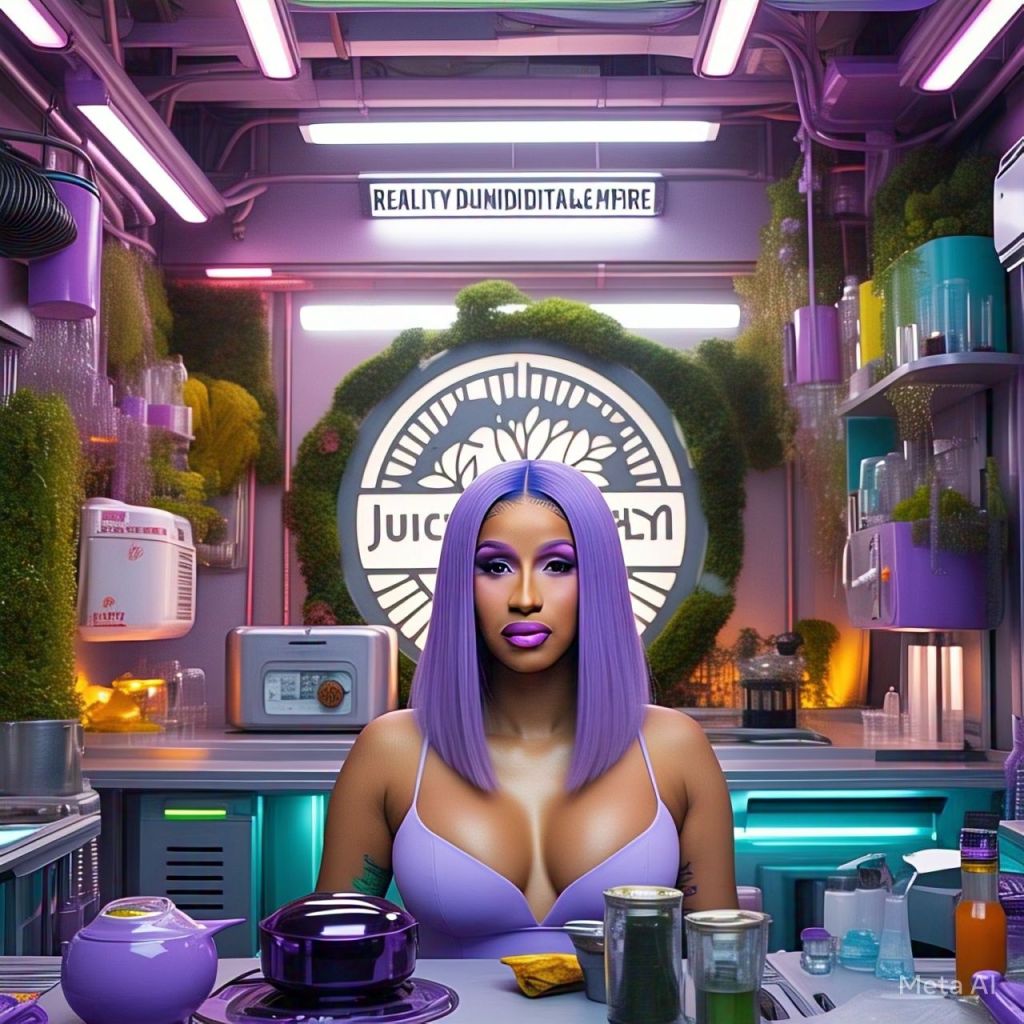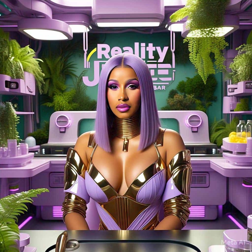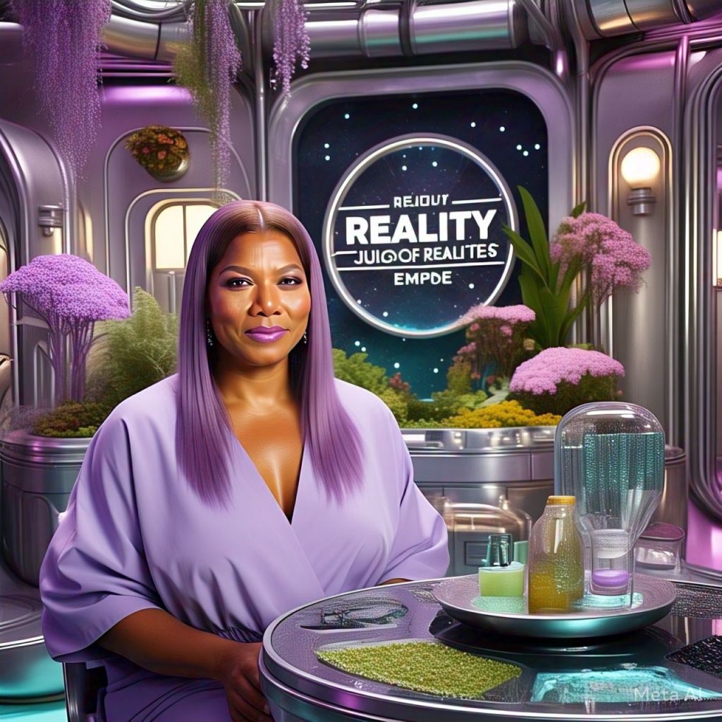 A thunderstorm cracks across the sky. Fog rolls through a lush, neon-colored jungle. There’s a golden throne made of vines, gemstones, and scriptures glowing in ancient writing. A drum circle surrounds Antoinette who sits on the throne wearing a glowing white robe and a diamond crown. Her aura is undeniable.