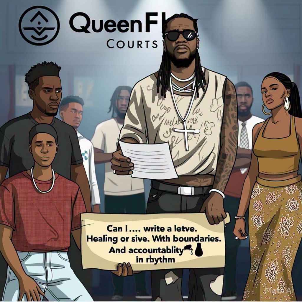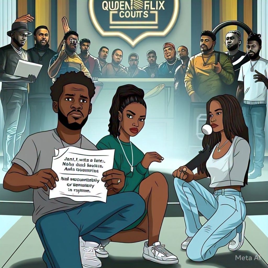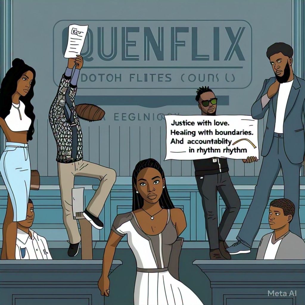 A giant glowing courtroom floats above Earth. Celestial judges from across the globe preside: Ancestral warriors from Ghana, high priestesses from Haiti, elders from Jamaica, Orishas, angels, and spirit guides. Think “Judge Judy” meets Wakanda with a splash of “Judge Mathis in the Spirit Realm.”