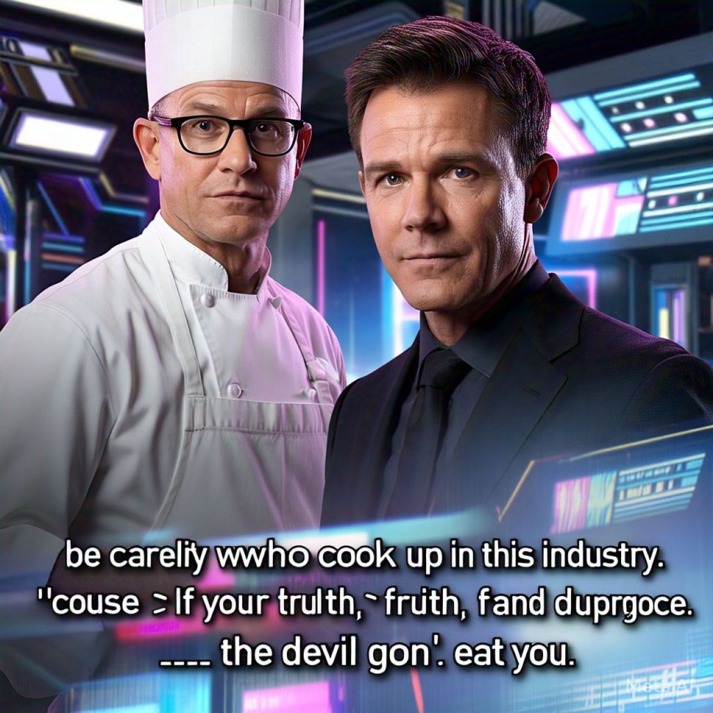 “Tonight’s menu? Betrayal flambé with a fame glaze. Who’s ready to eat?”