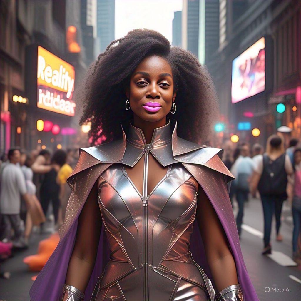 A low hum starts. Her aura glows. A melanin-powered frequency begins to play—432Hz fused with ancient harmonic tones. The red lights flicker, then burn out.