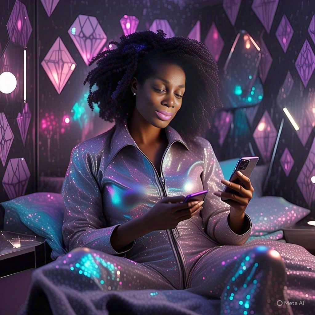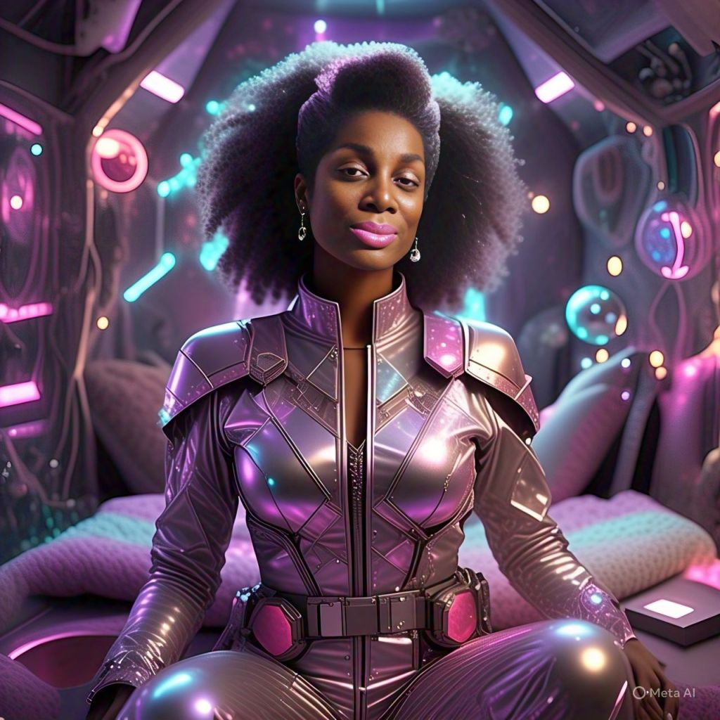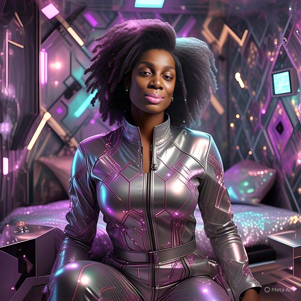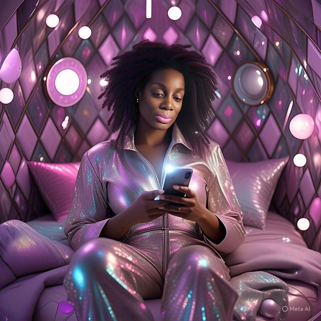 Antoinette, Michelle, and Danielle sit in custom lavender power suits on a 3-screen call with Paris, Dubai, Johannesburg.