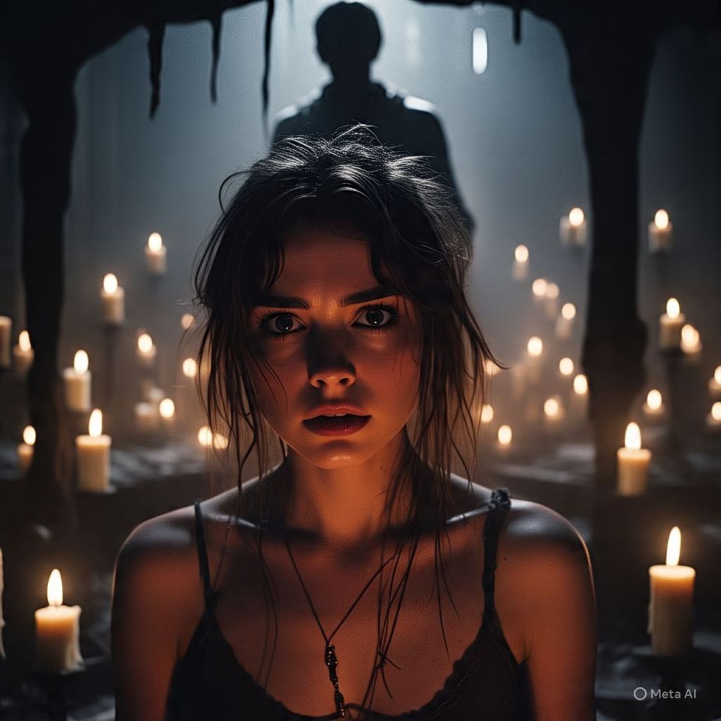 Lights go off. The camera watches her ring light flicker. Then—static. Screams.