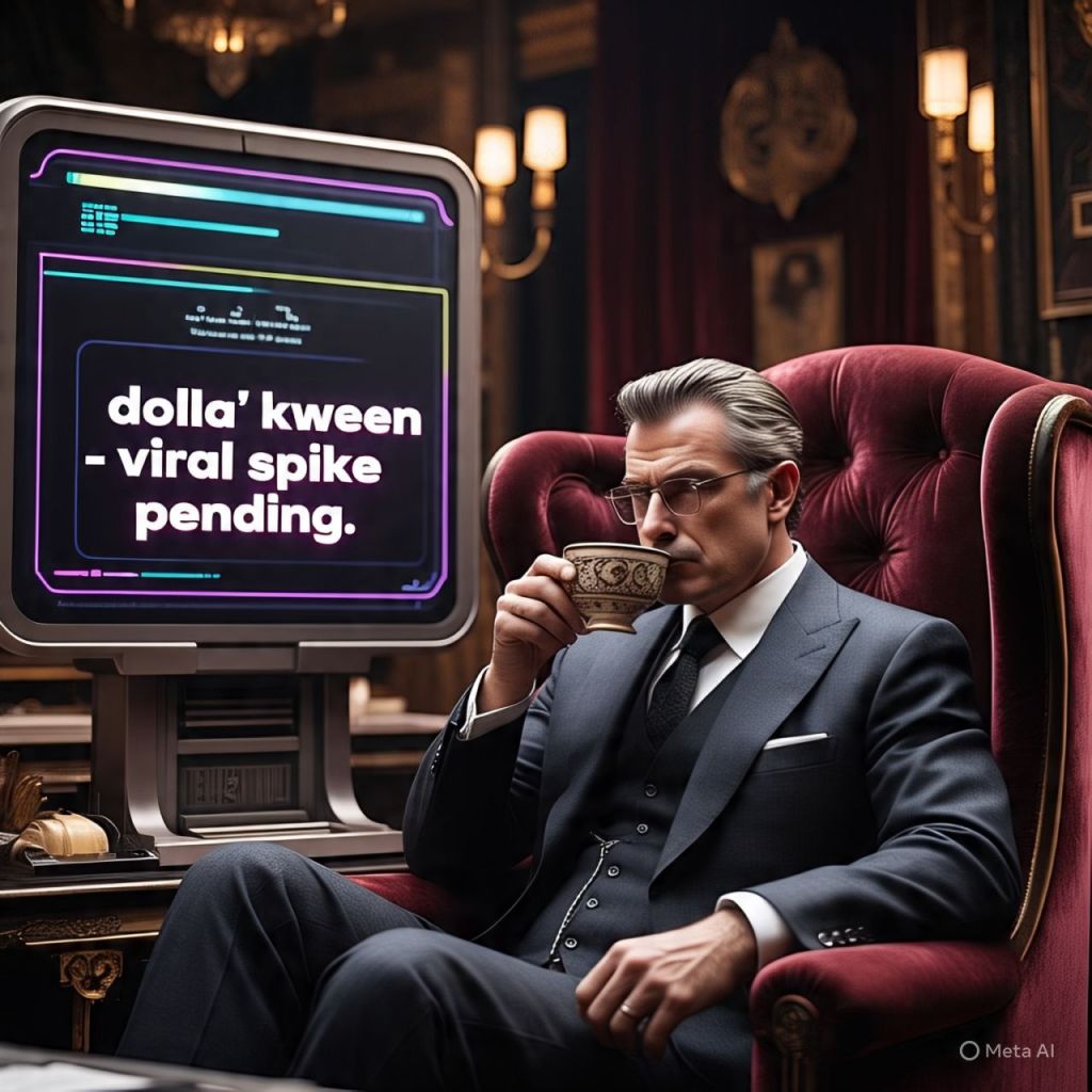 He sips again. A new name appears on the screen: “Dolla’ Kween – Viral Spike Pending.”