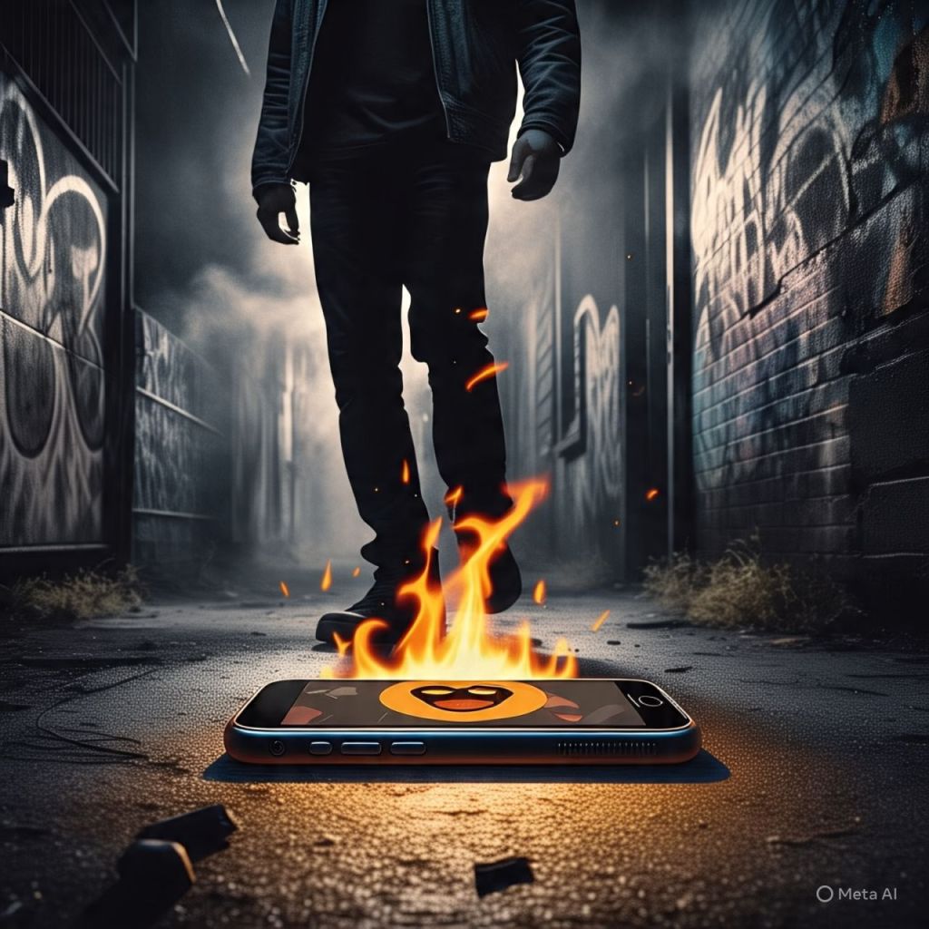 A glowing coffin made of phones, tablets, USB drives, and cursed fan DMs.