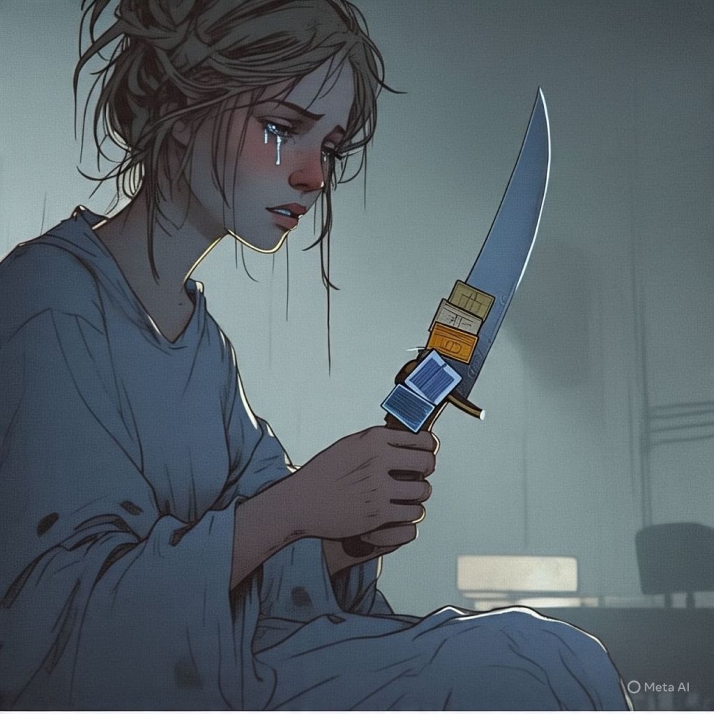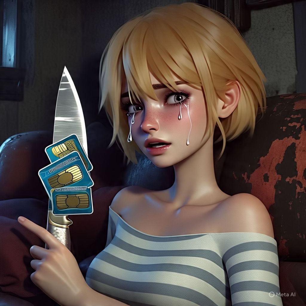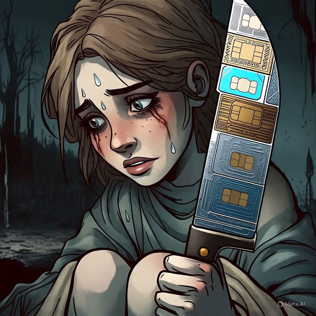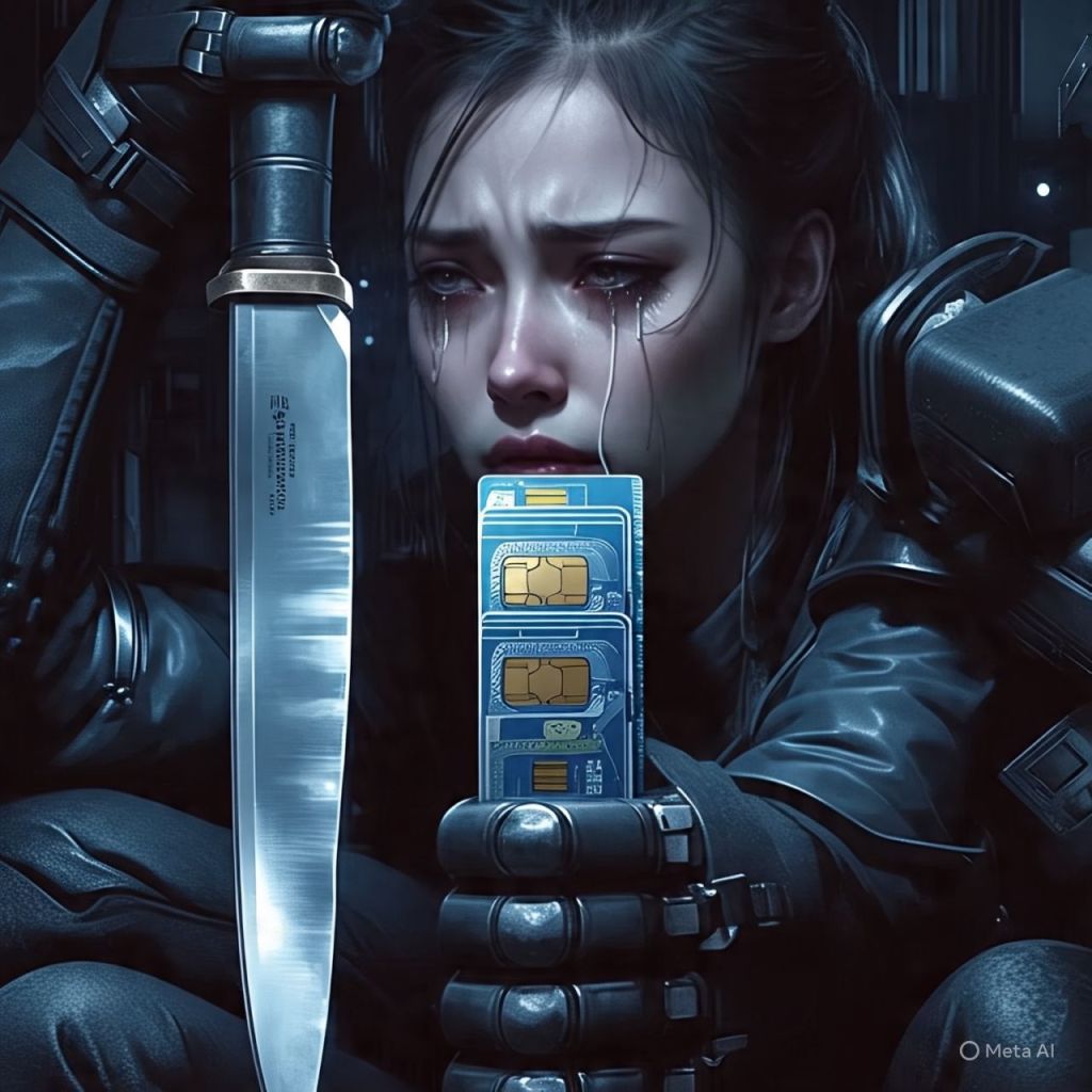 She looks down at the knife made of SIM cards — a gift left by the Dark Net Angels.