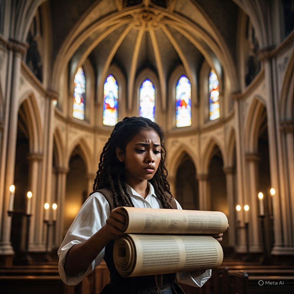 Inside a burned-out church, Alani unrolls the final unredacted scroll from Dr. York.