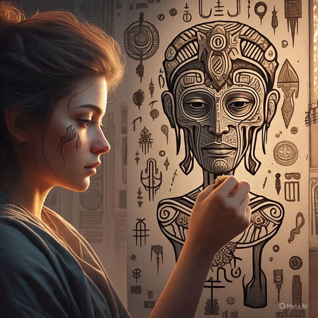 He turns to the wall and draws a final symbol.
