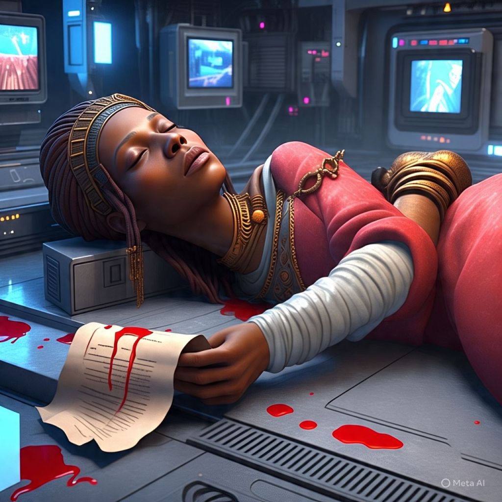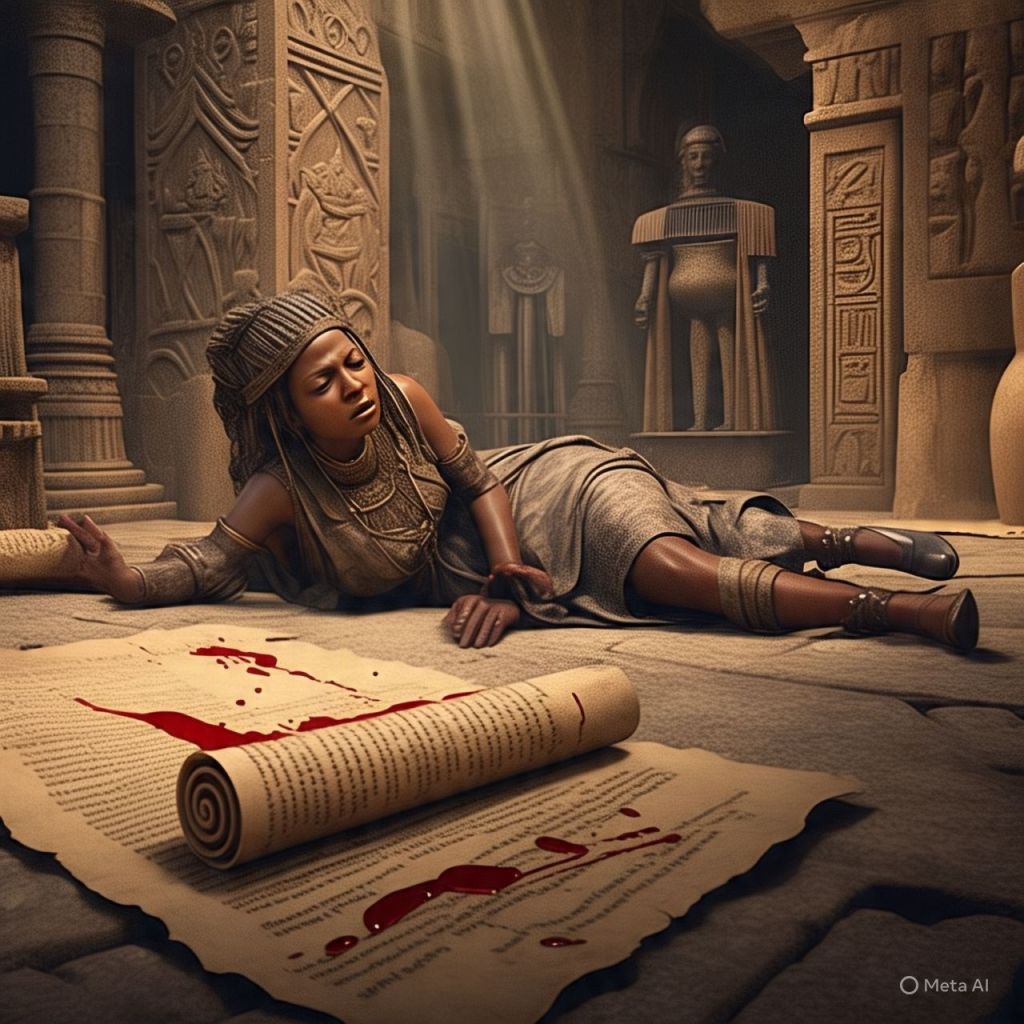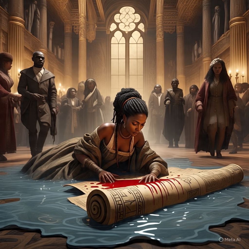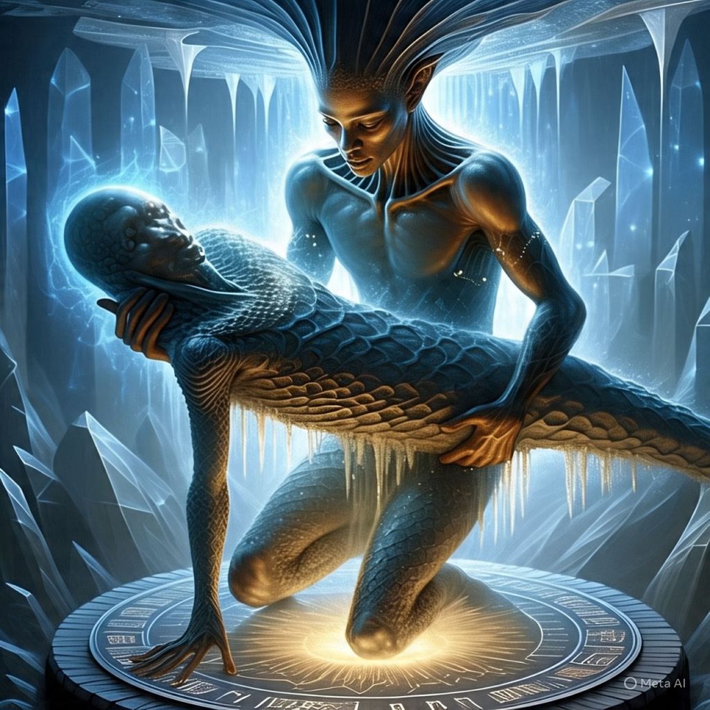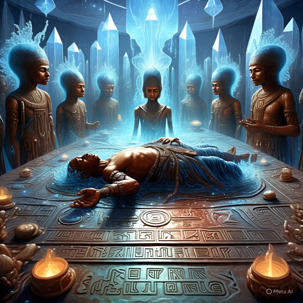 Her blood spills onto a platform that reacts like code. Symbols light up — Nubian, Atlantean, and Celestial.