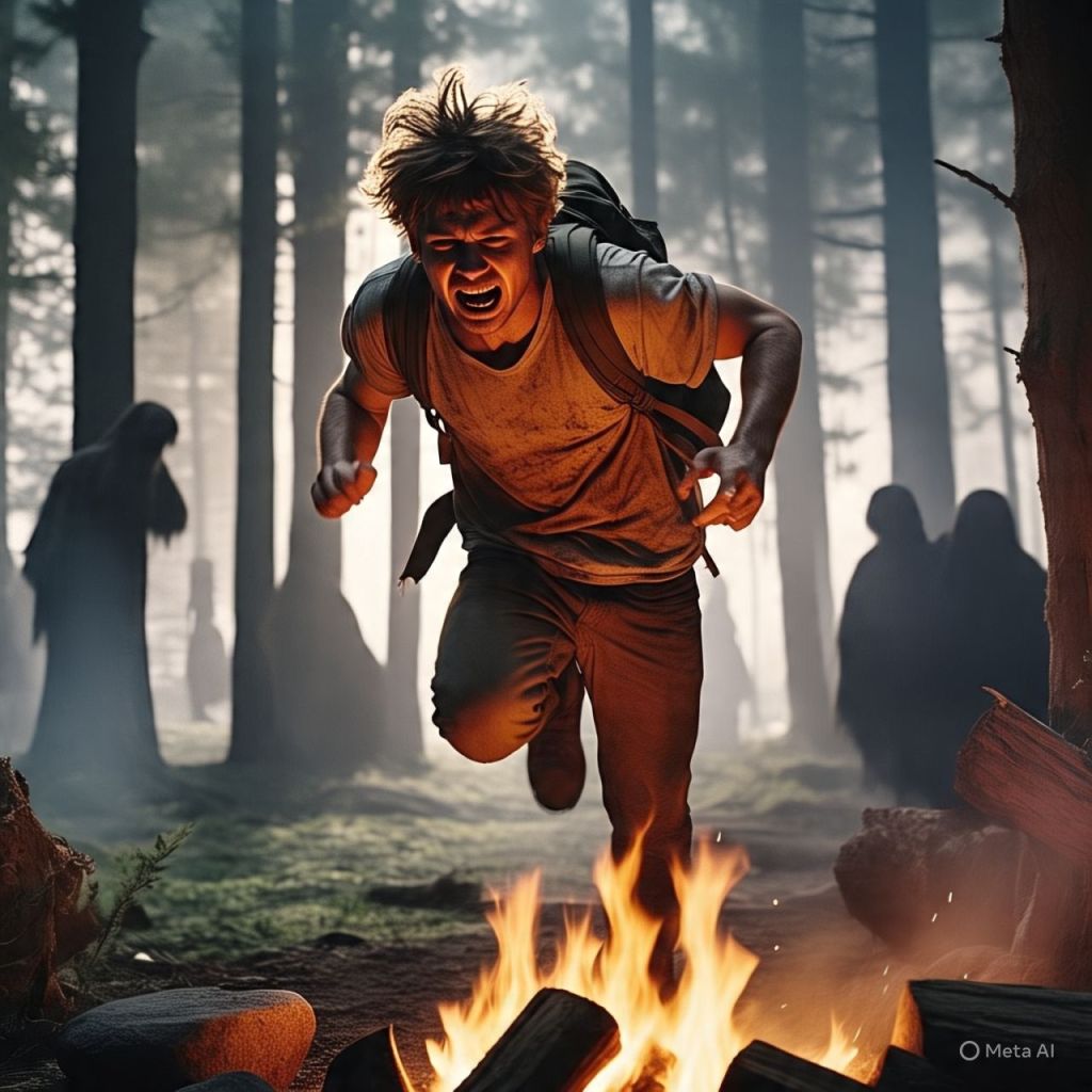 Dameon runs back to the camp, screaming.