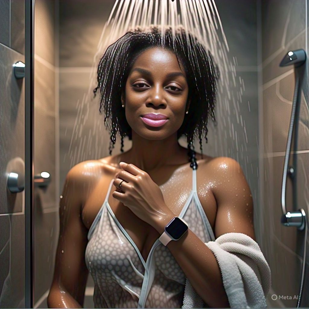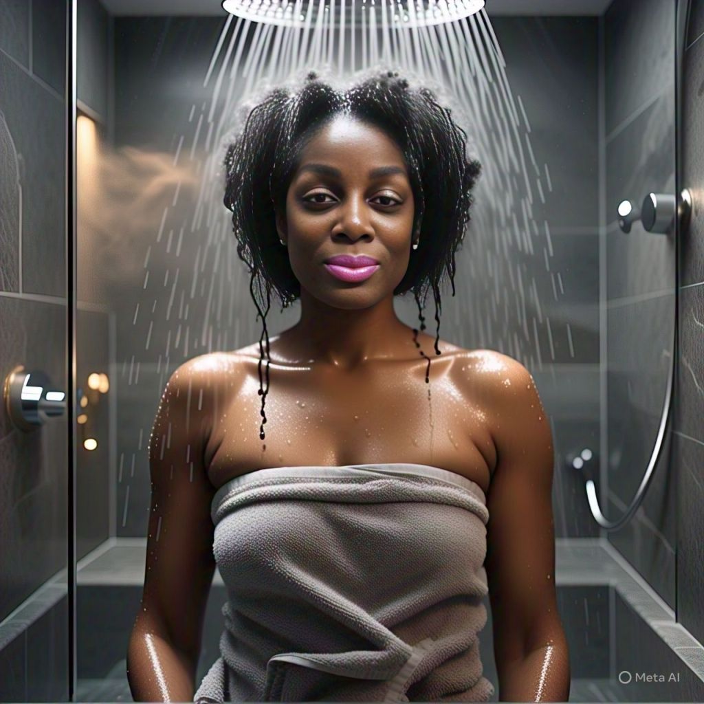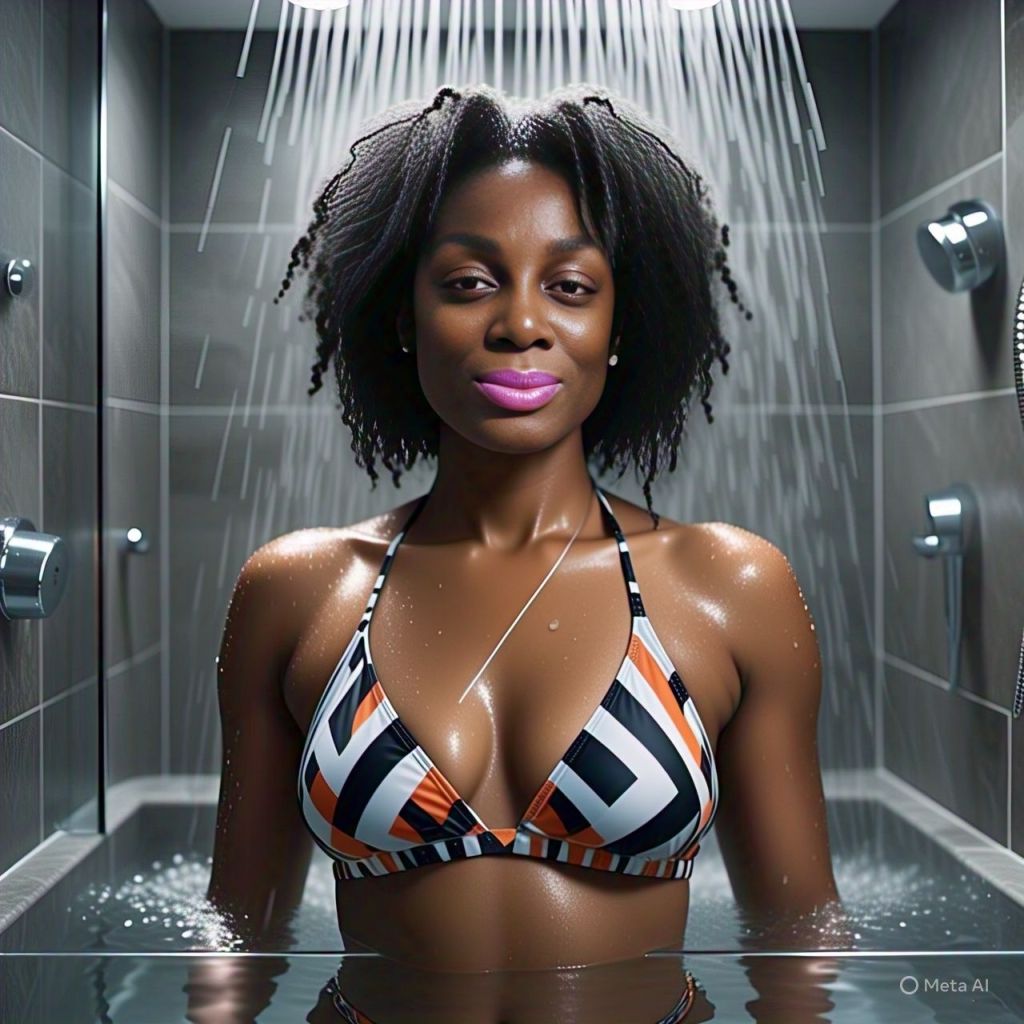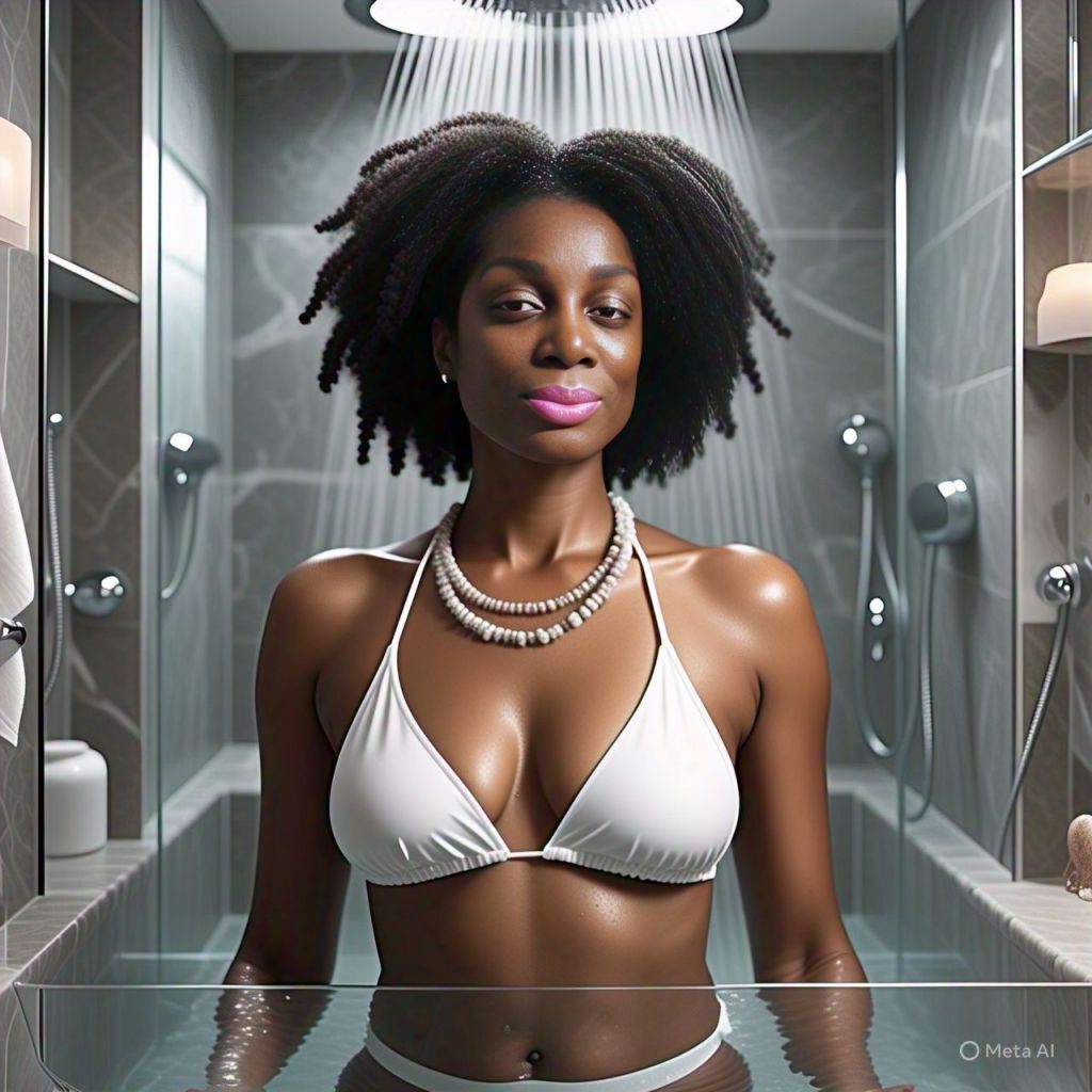 Later, Antoinette stands in the shower alone.