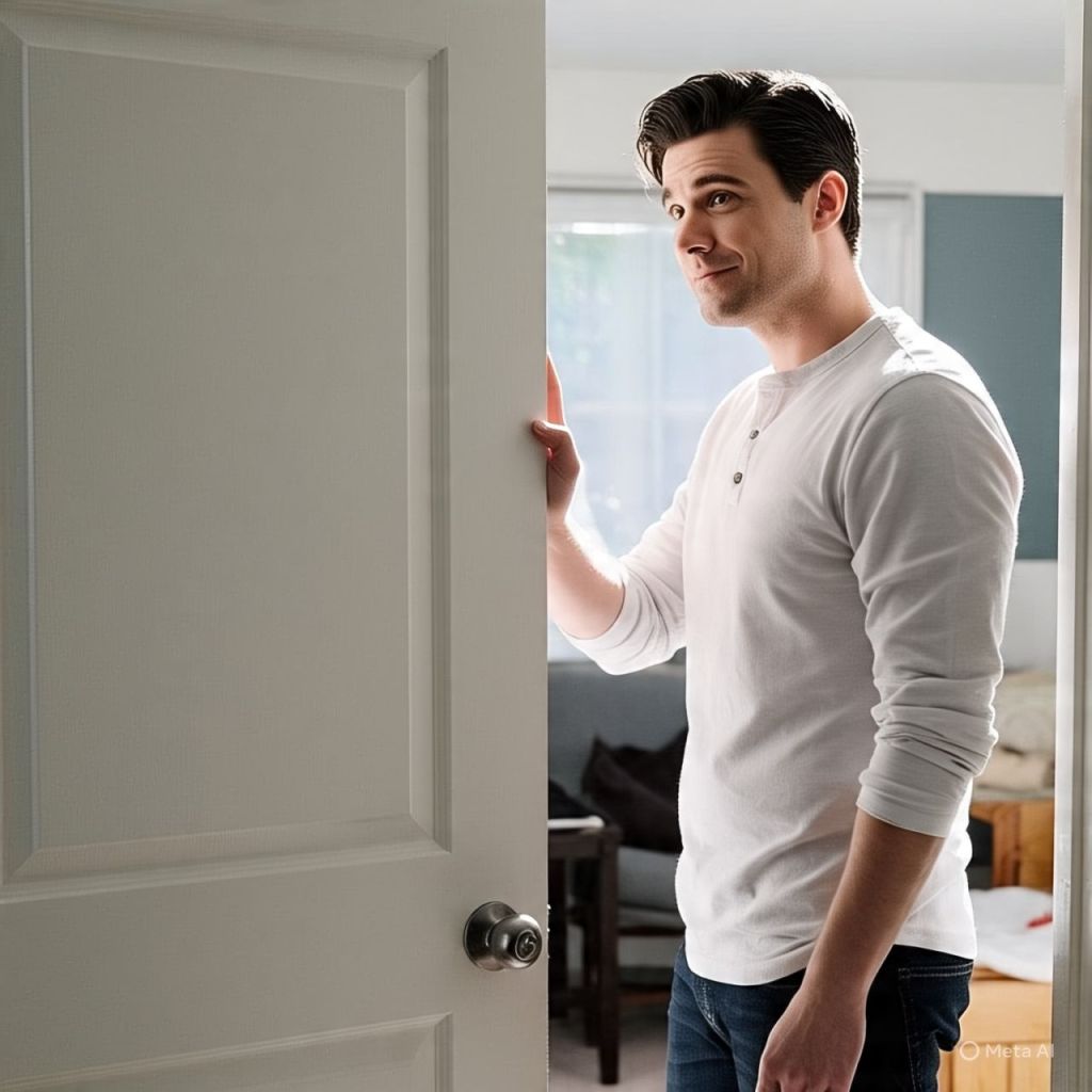 AJ is standing. Hand raised to knock. But he hears her moan softly.