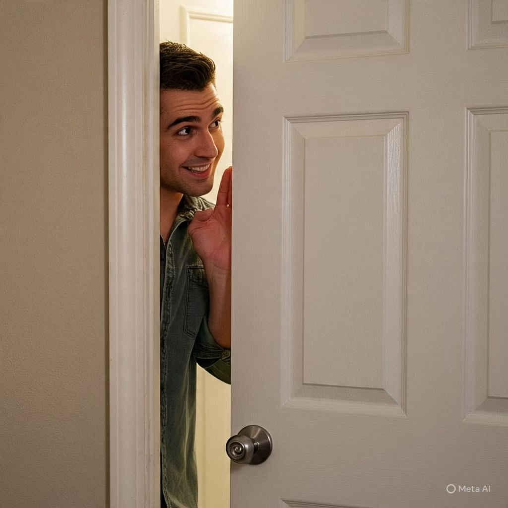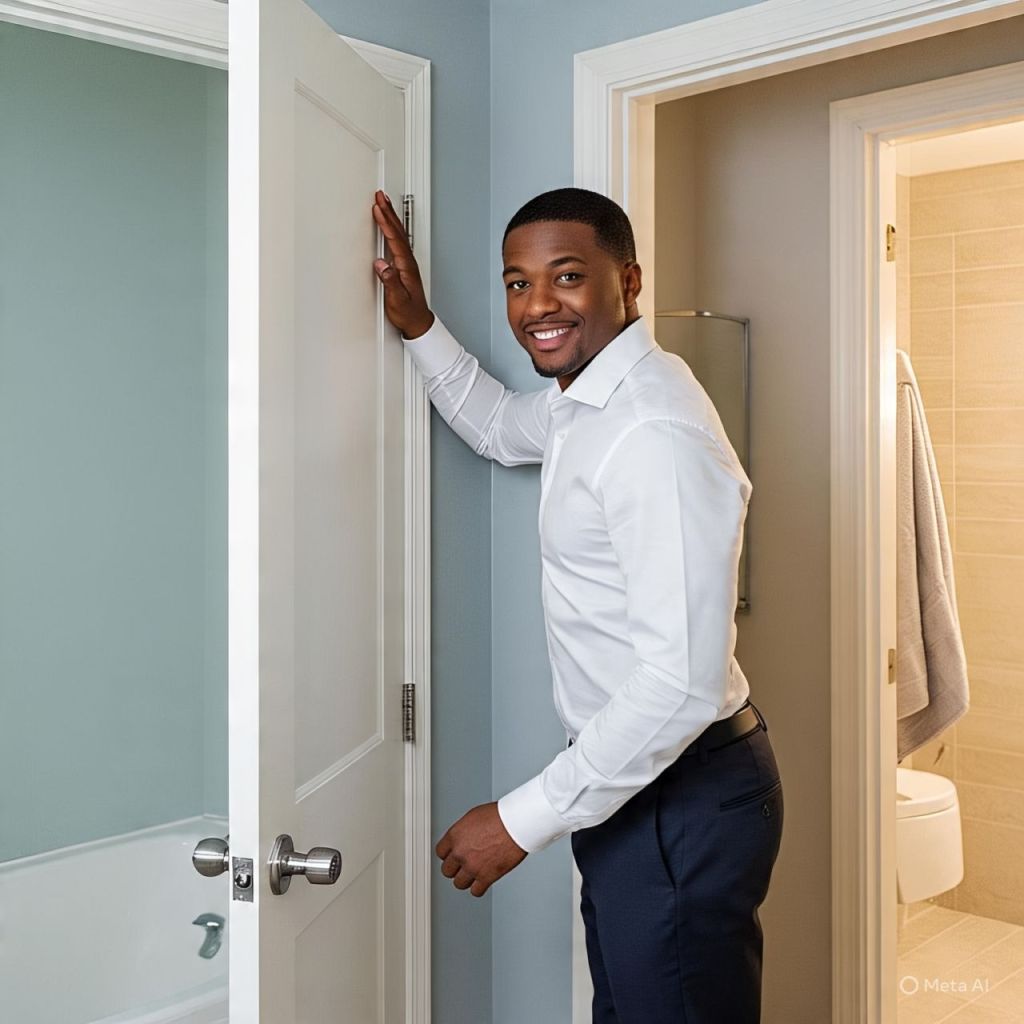 Outside the bathroom door…