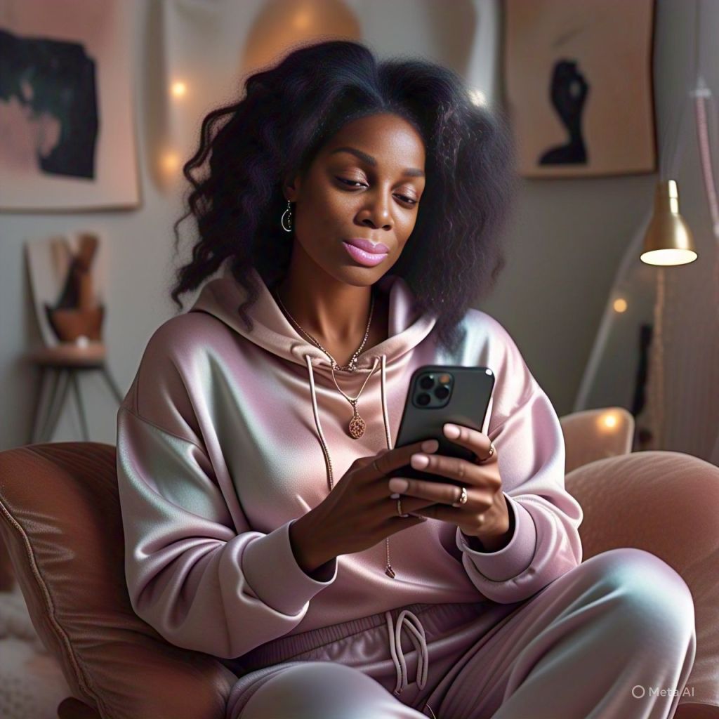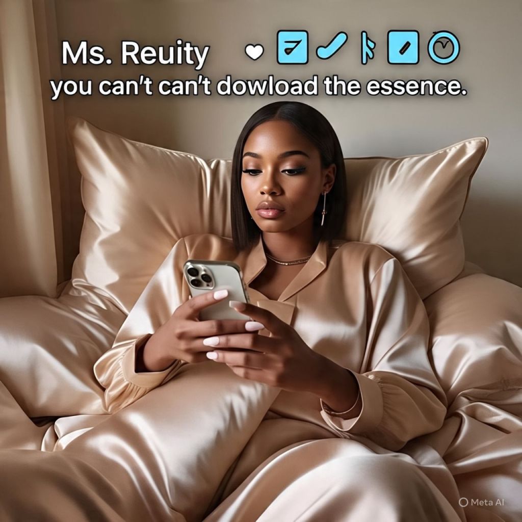[Scene: Ms. Reality is scrolling her phone, wrapped in silk, edges laid, music low.]