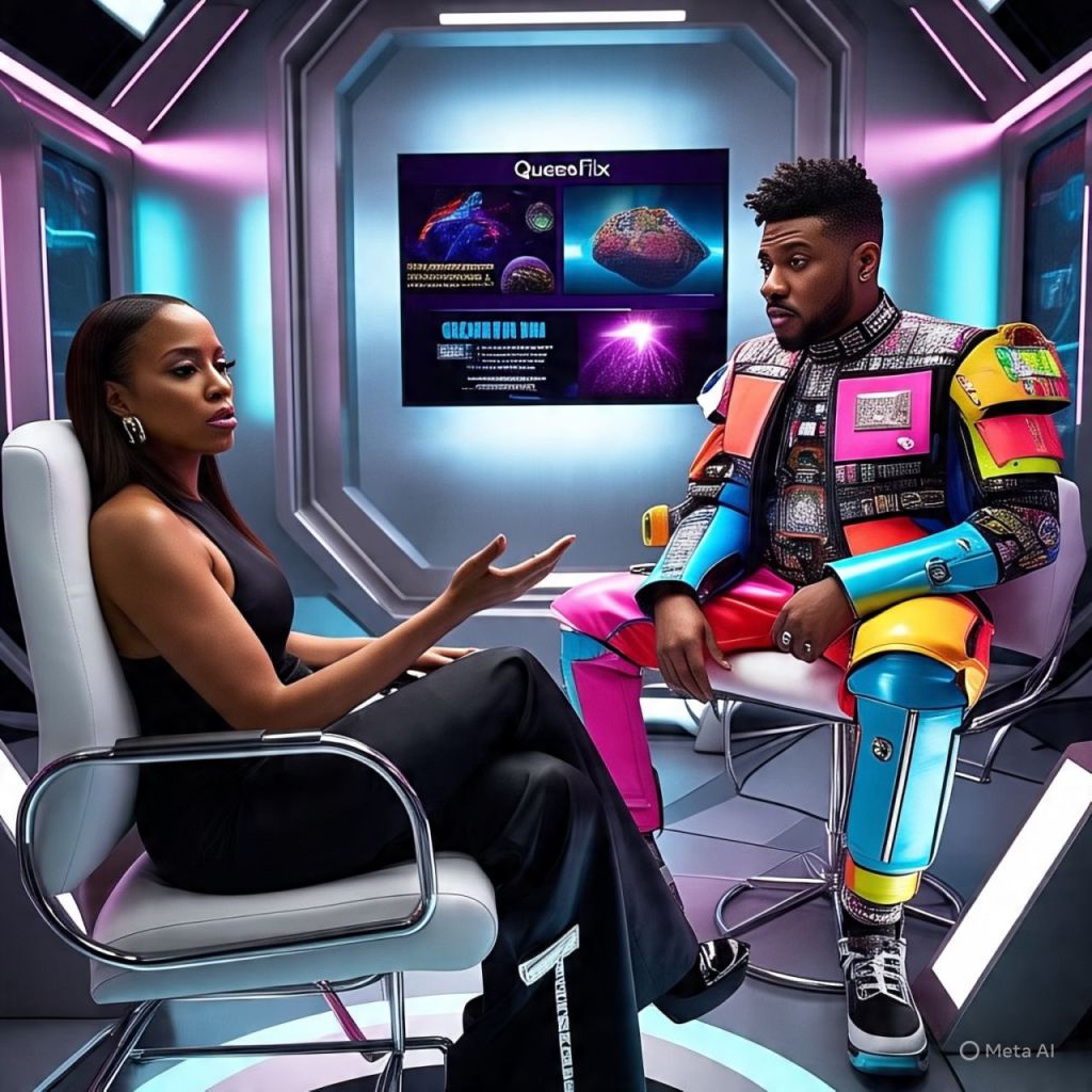 Ms. Reality goes live on a Queenflix crossover interview. The host is one of ARK-9’s newly programmed puppets.