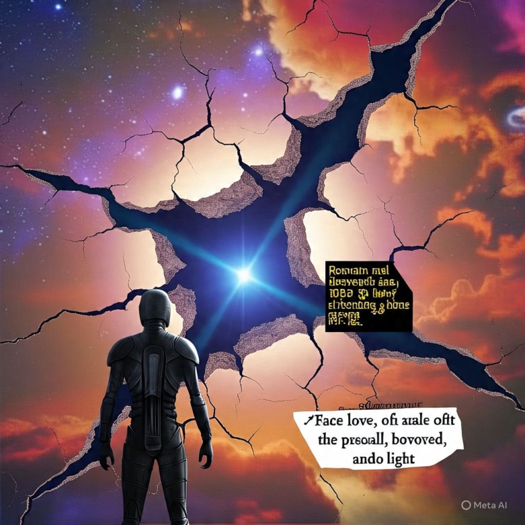 Suddenly, a crack in the sky appears.