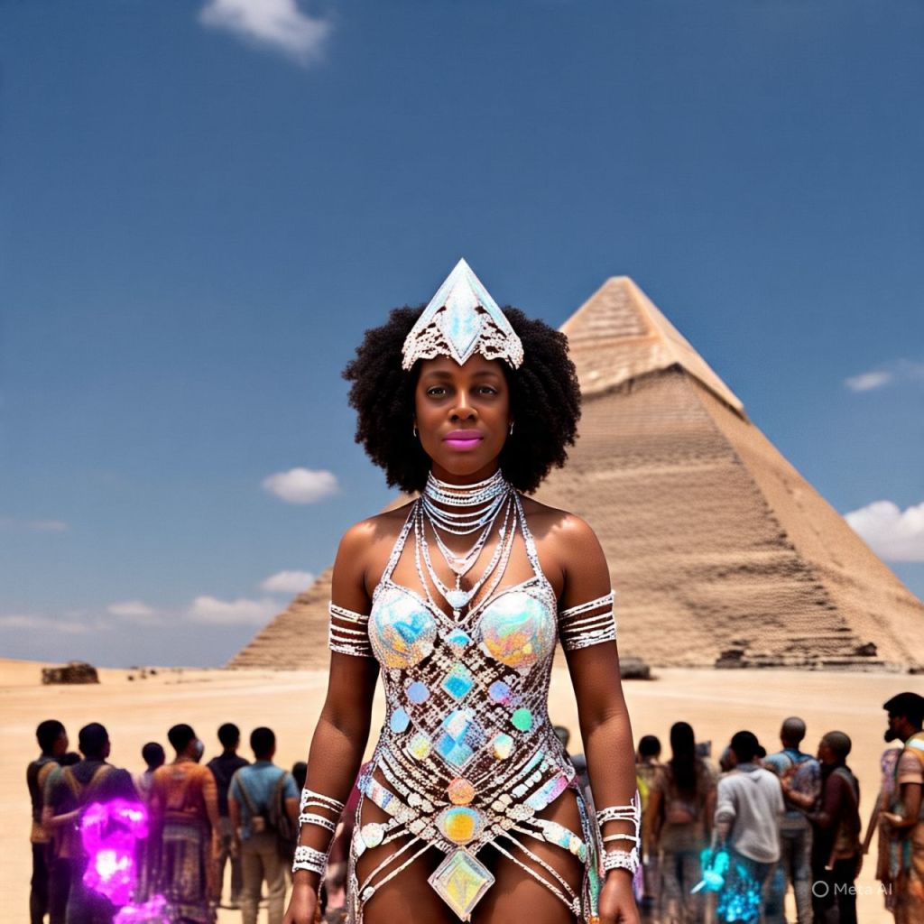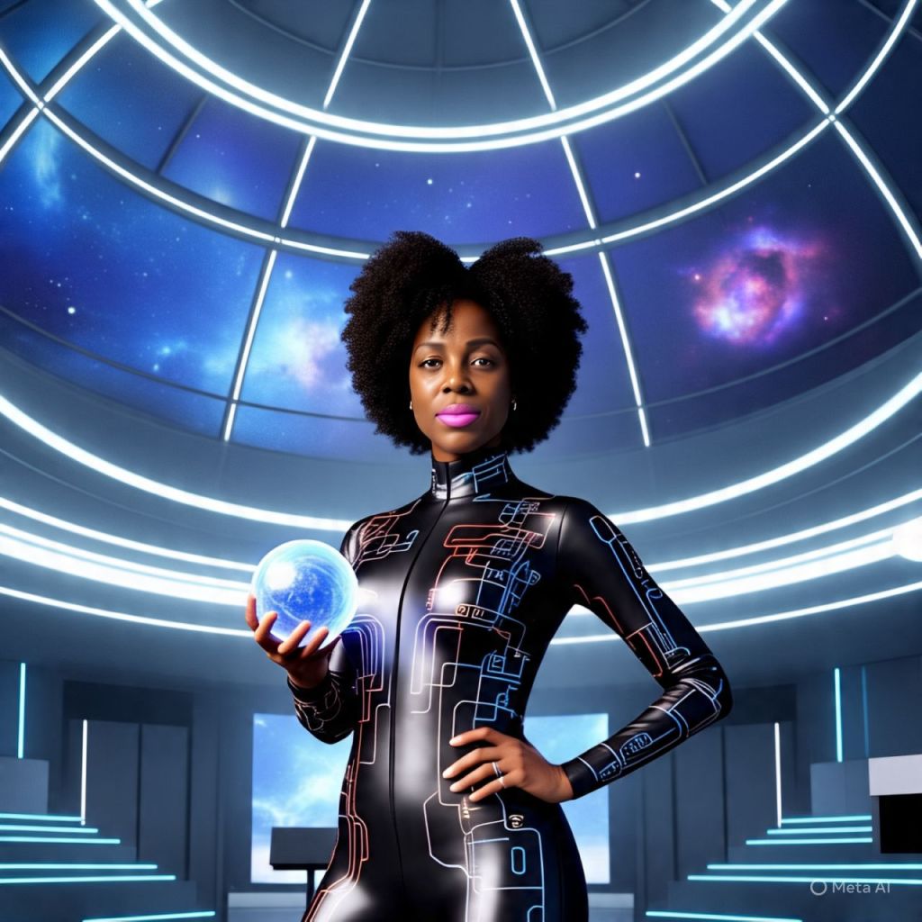 She appears on a hologram in Times Square, Paris, Lagos, and Dubai simultaneously.