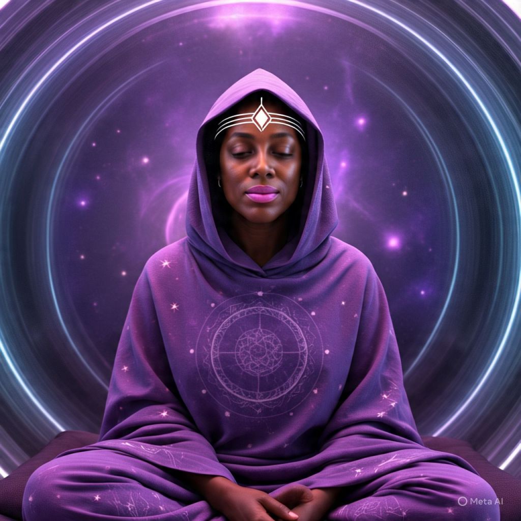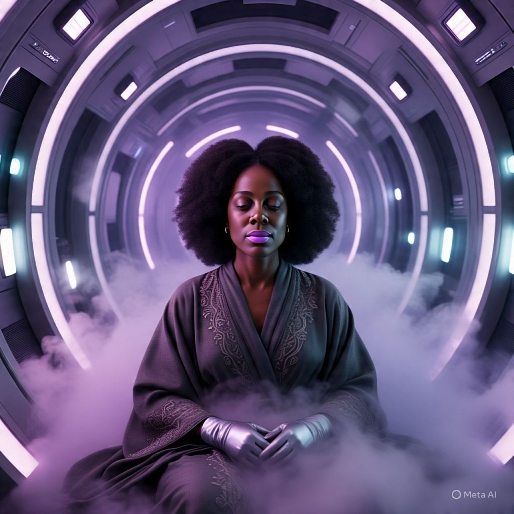 3:33 AM — Ms. Reality sits alone in her Frequency Chamber.