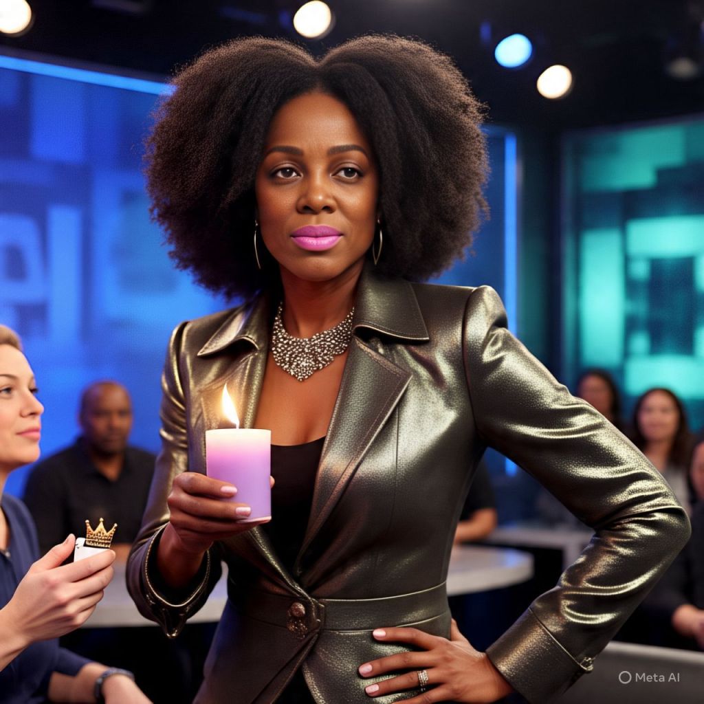 Ms. Reality (lighting her lavender candle with a lighter shaped like a crown):