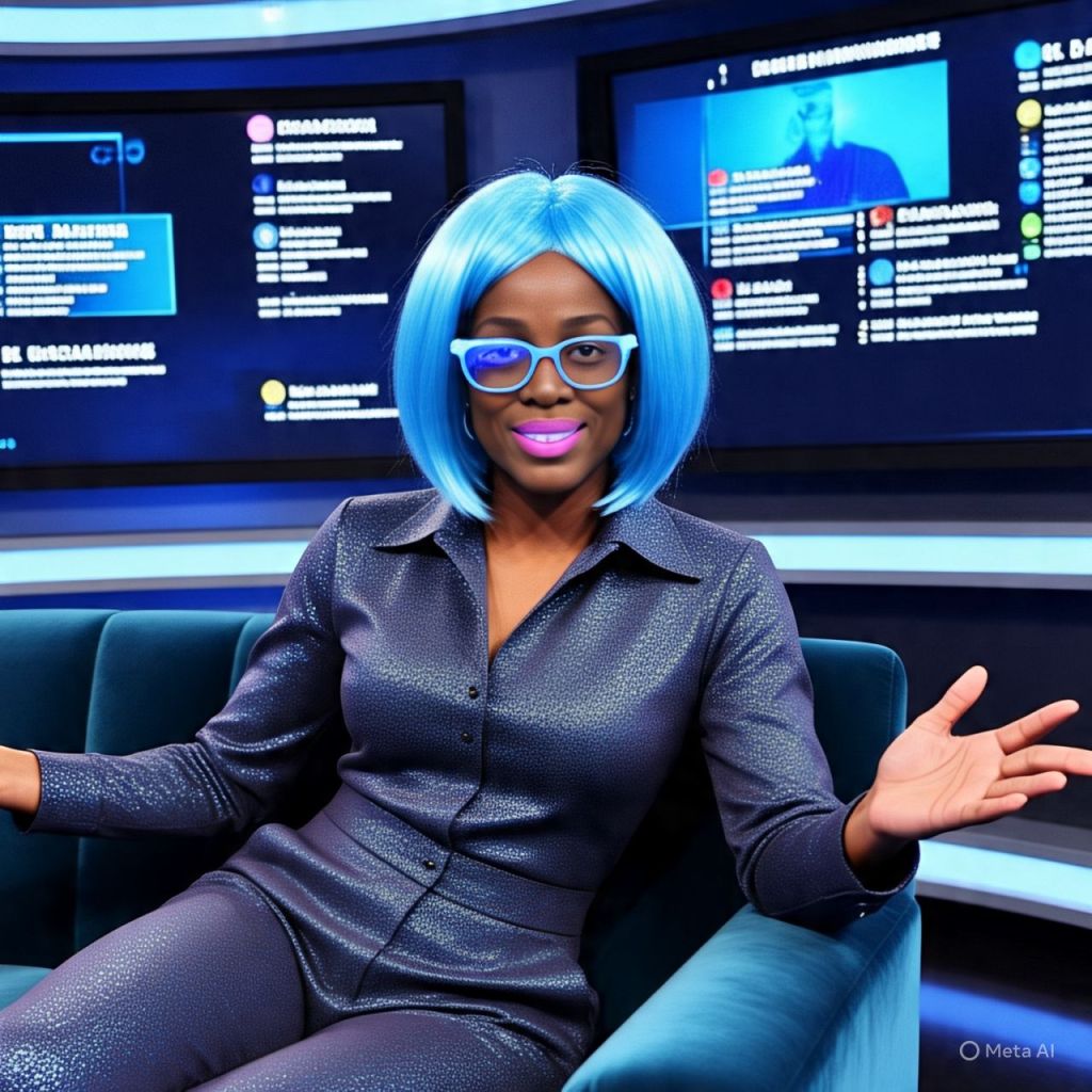 Cut to a scene of a knock-off host using AI to fake passion, stealing lines from Ms. Reality’s show. Their wig slides. Viewers drag them in the comments.