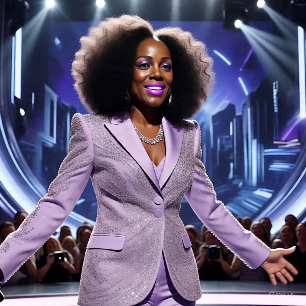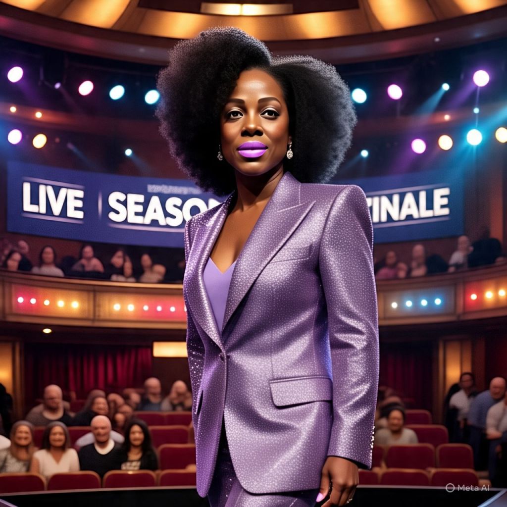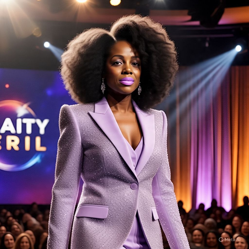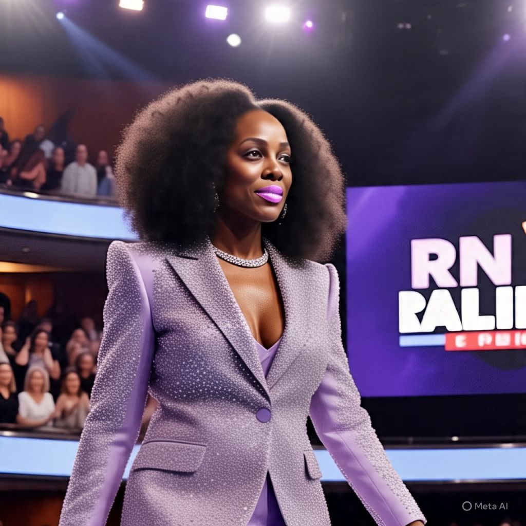 MS. REALITY walks onto the stage of a packed theater where her live season finale is being filmed. She’s in a diamond-encrusted suit with lavender heels. The crowd erupts.