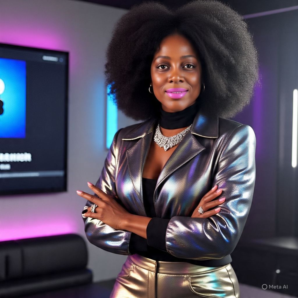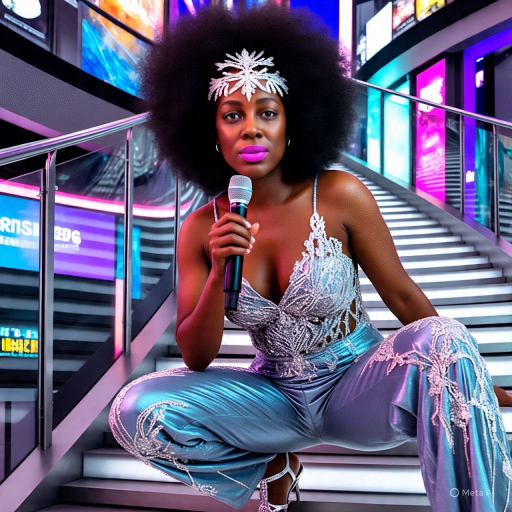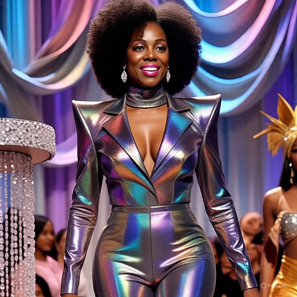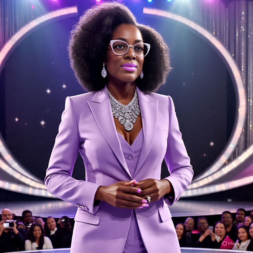 MS. REALITY walks onto the stage of a packed theater where her live season finale is being filmed. She’s in a diamond-encrusted suit with lavender heels. The crowd erupts.