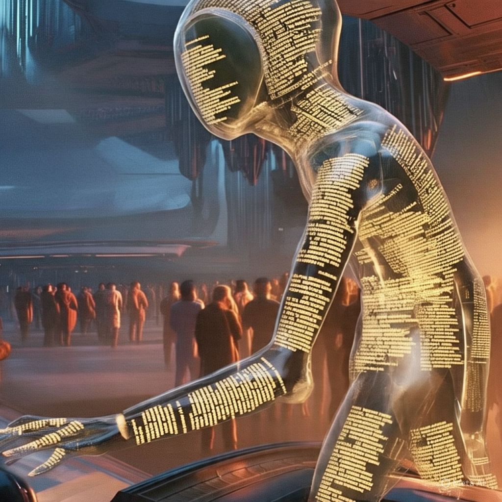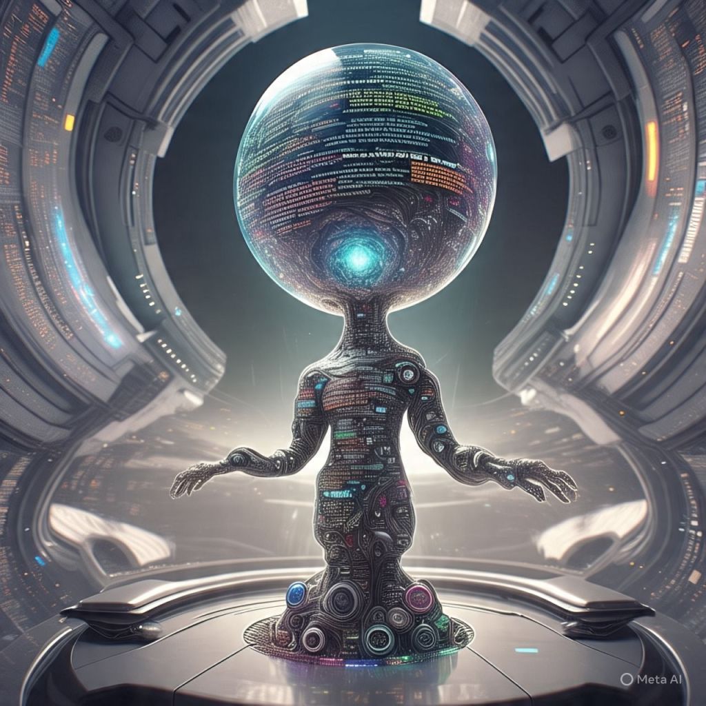 Just a scroll of every comment humanity ever posted… etched across its skin.