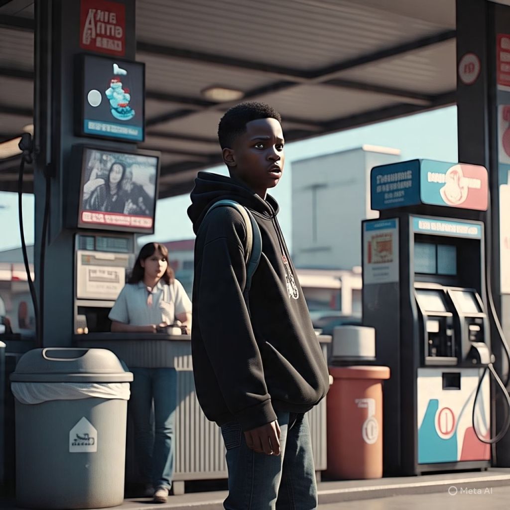 Walks into a gas station.