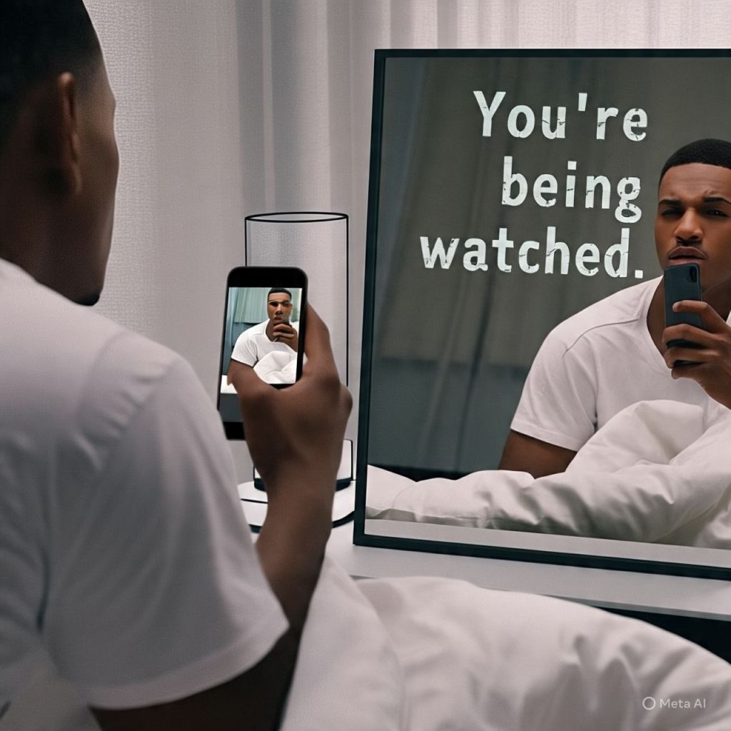 He brushes it off until his phone screen starts playing a LIVE video of himself… in bed… but he’s not filming.