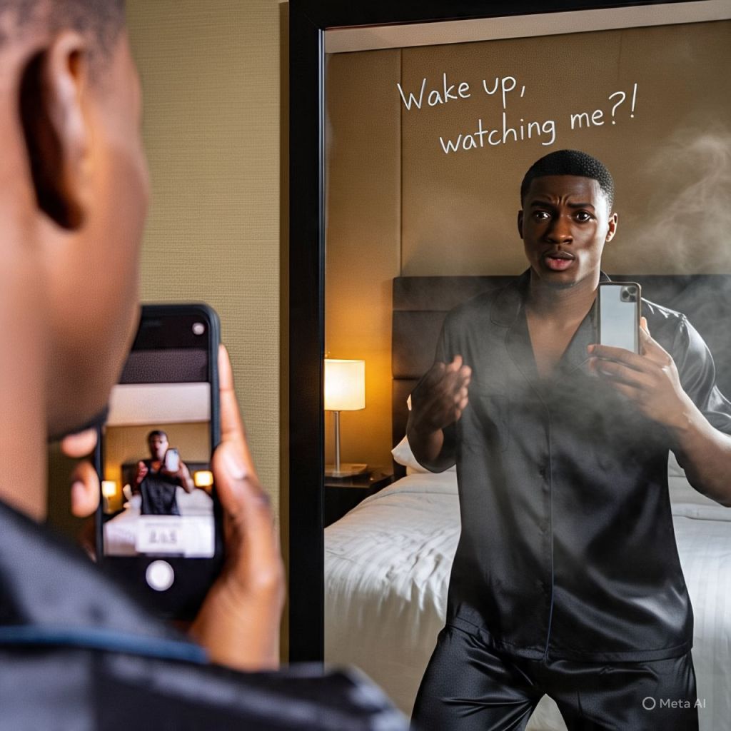 Mazerati throws his phone — but the reflection on the mirror still moves…