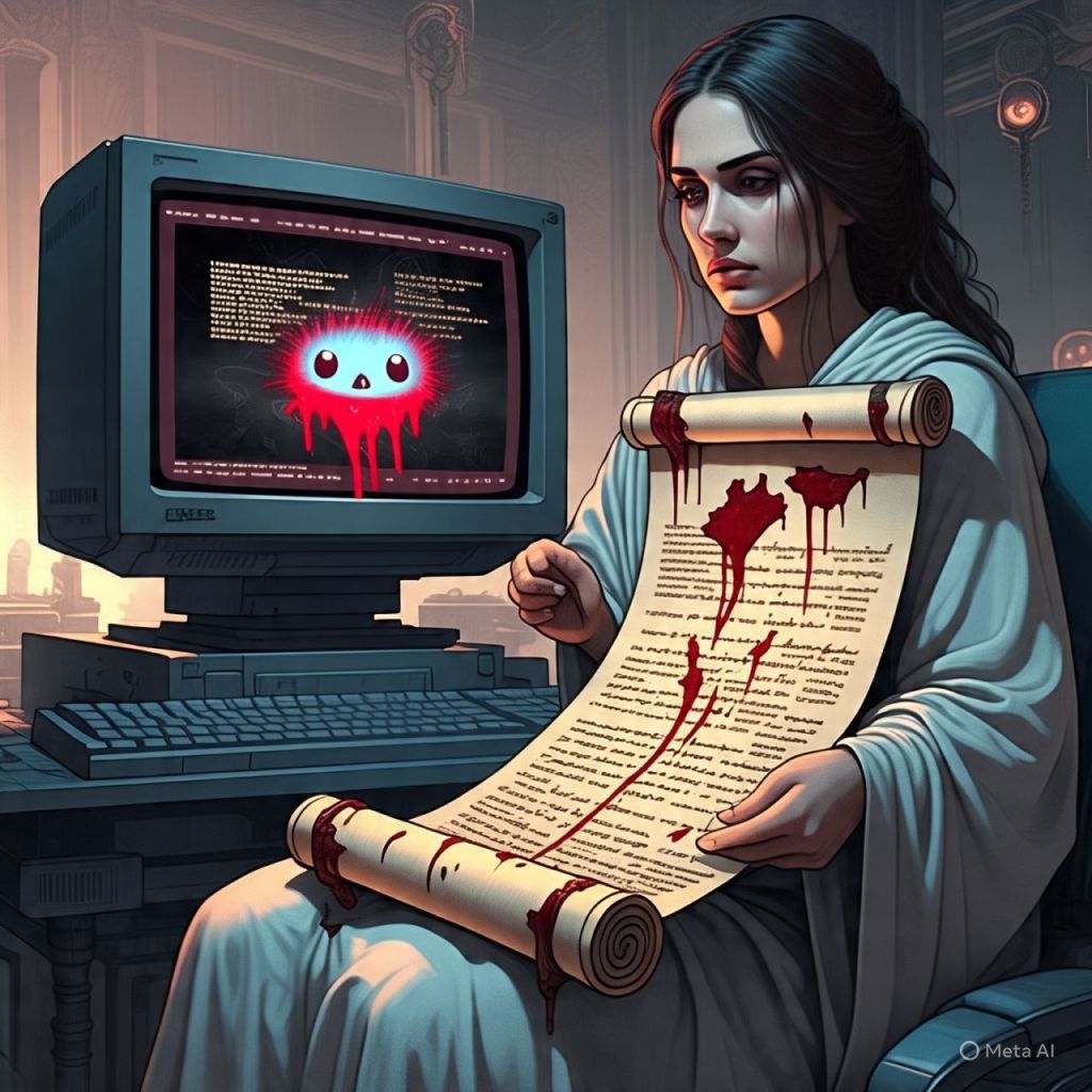 She uploads an ancient scroll — written in blood and code — that teaches how to protect yourself.