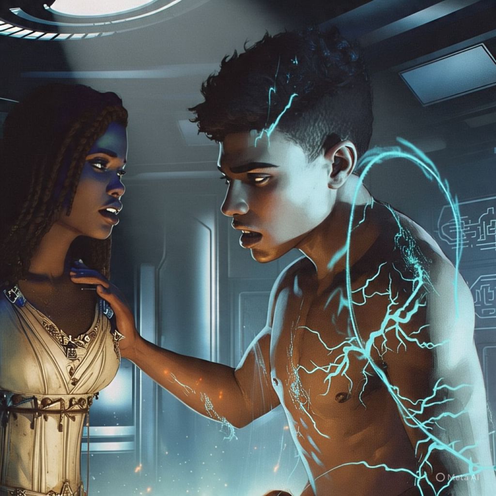Tall. Regal. Slim. Dark-skin glowing like obsidian dipped in lightning.