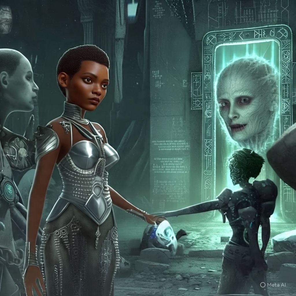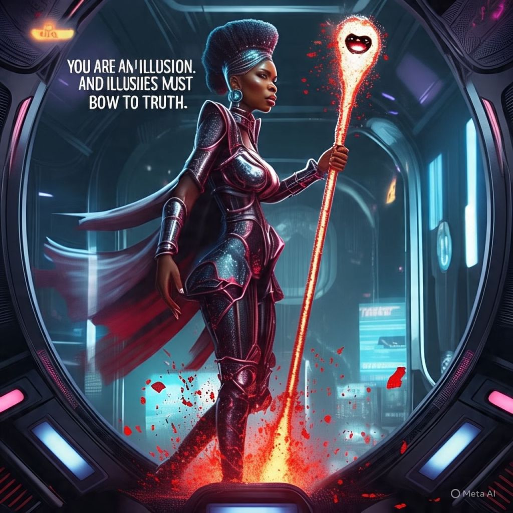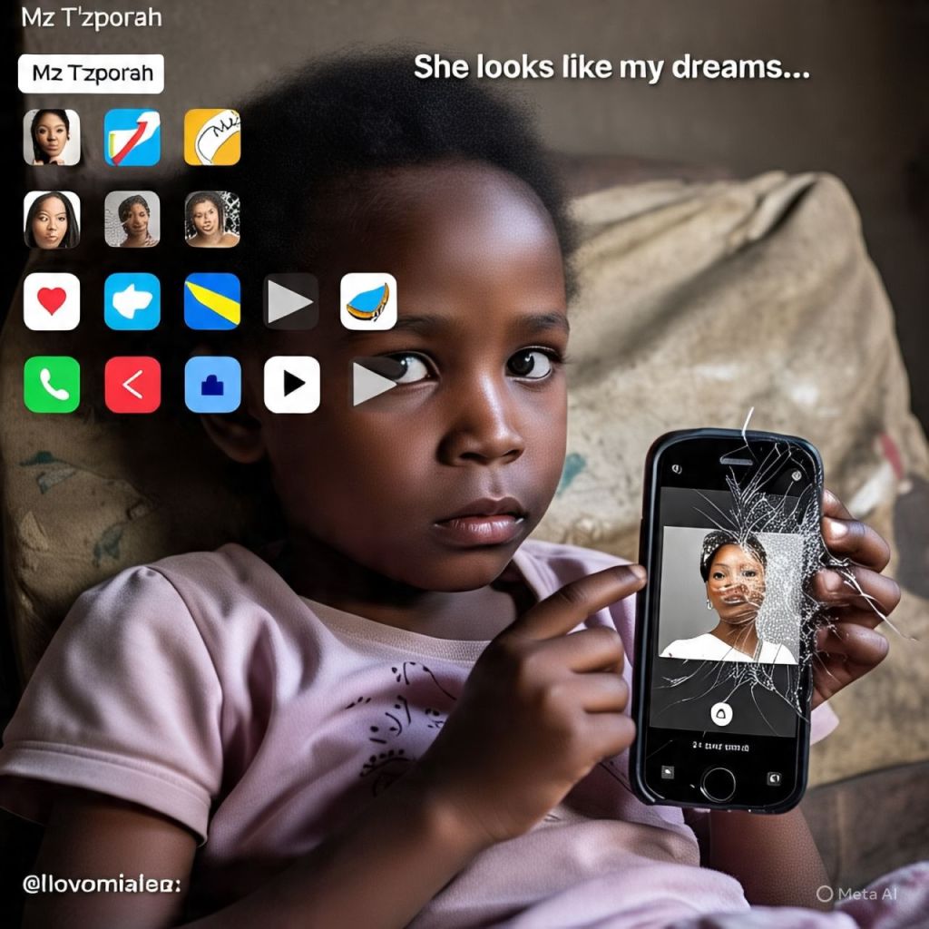 The phone glitches… and Mz T’Zporah blinks at her through the screen.