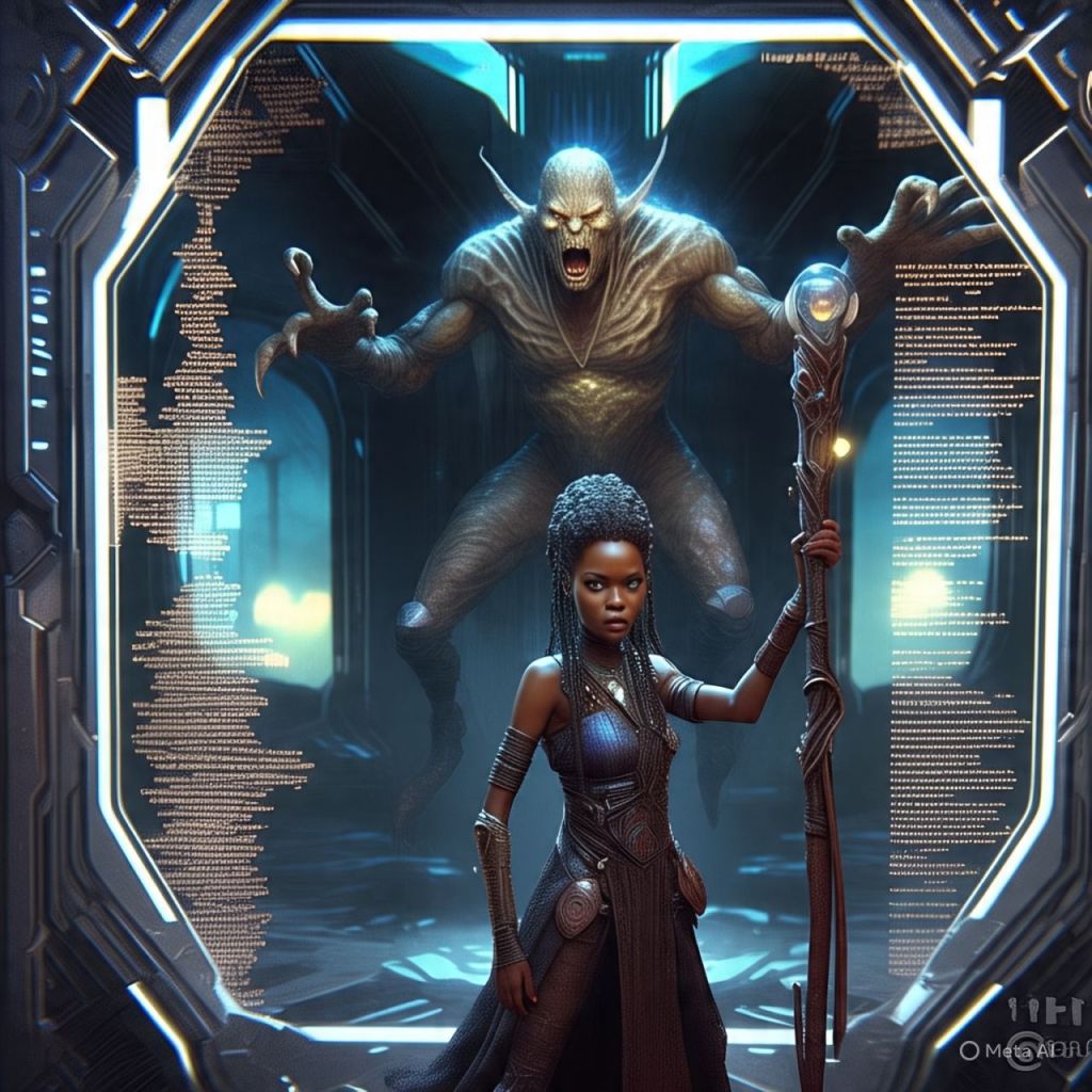 Mz T’Zporah lifts her staff — it glows with divine code — and says: