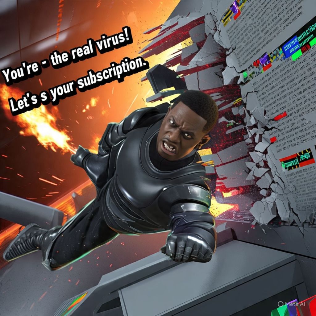 He wields a weapon called THE VIRALIZER — a gun that turns anyone into clickbait.