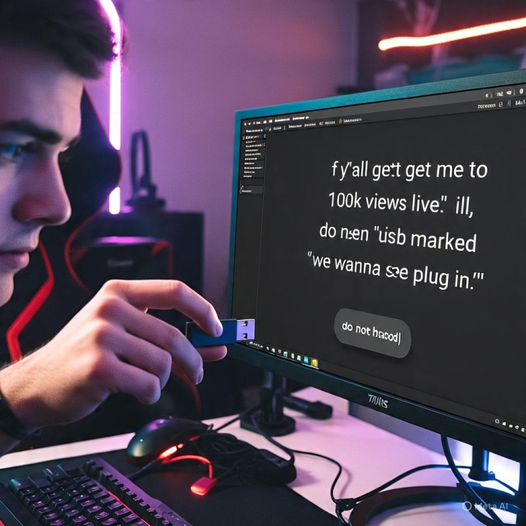 “If y’all get me to 100K views live, I’ll open this USB marked ‘DO NOT PLUG IN.’”