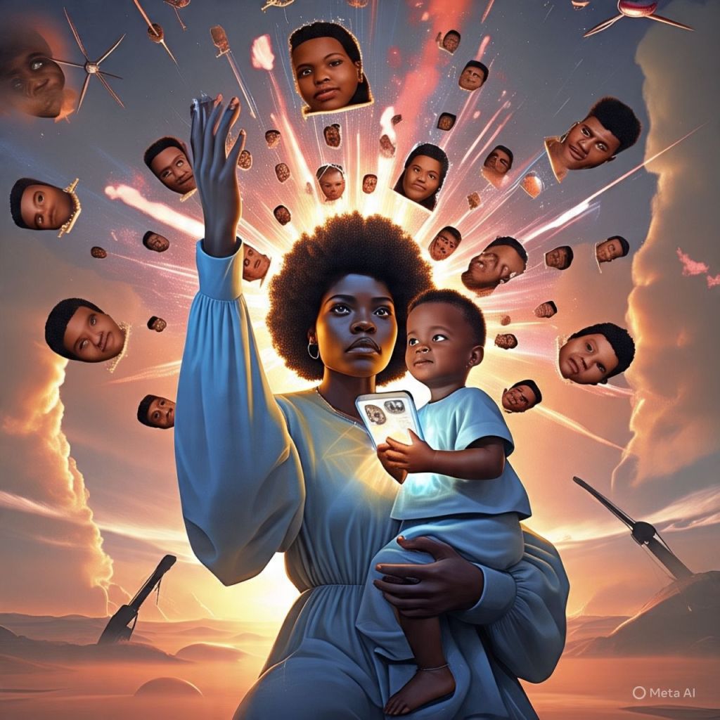 Their faces fill the skies like digital angels.