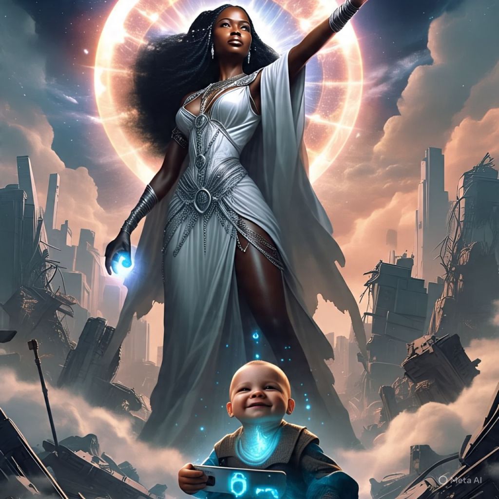 T’zporah appears—this time in full goddess armor, floating, glowing with divine code.