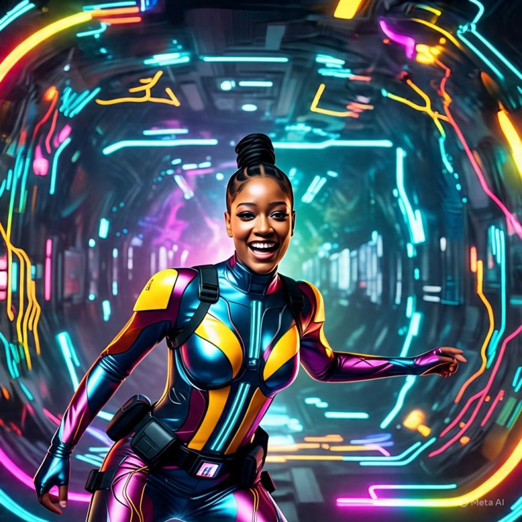 Ms. Reality enters in a silky black robe with a thigh-high slit and diamond heels. Her hair is slicked, edges laid, lips glossed like honey.