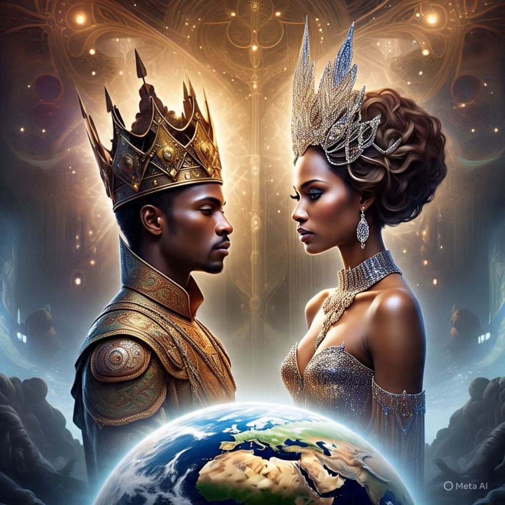 She places a multi-dimensional crown on his head. The Earth glows, cracks form into a map that spells “REAL LOVE,” and haters worldwide spontaneously get blocked from all future blessings.