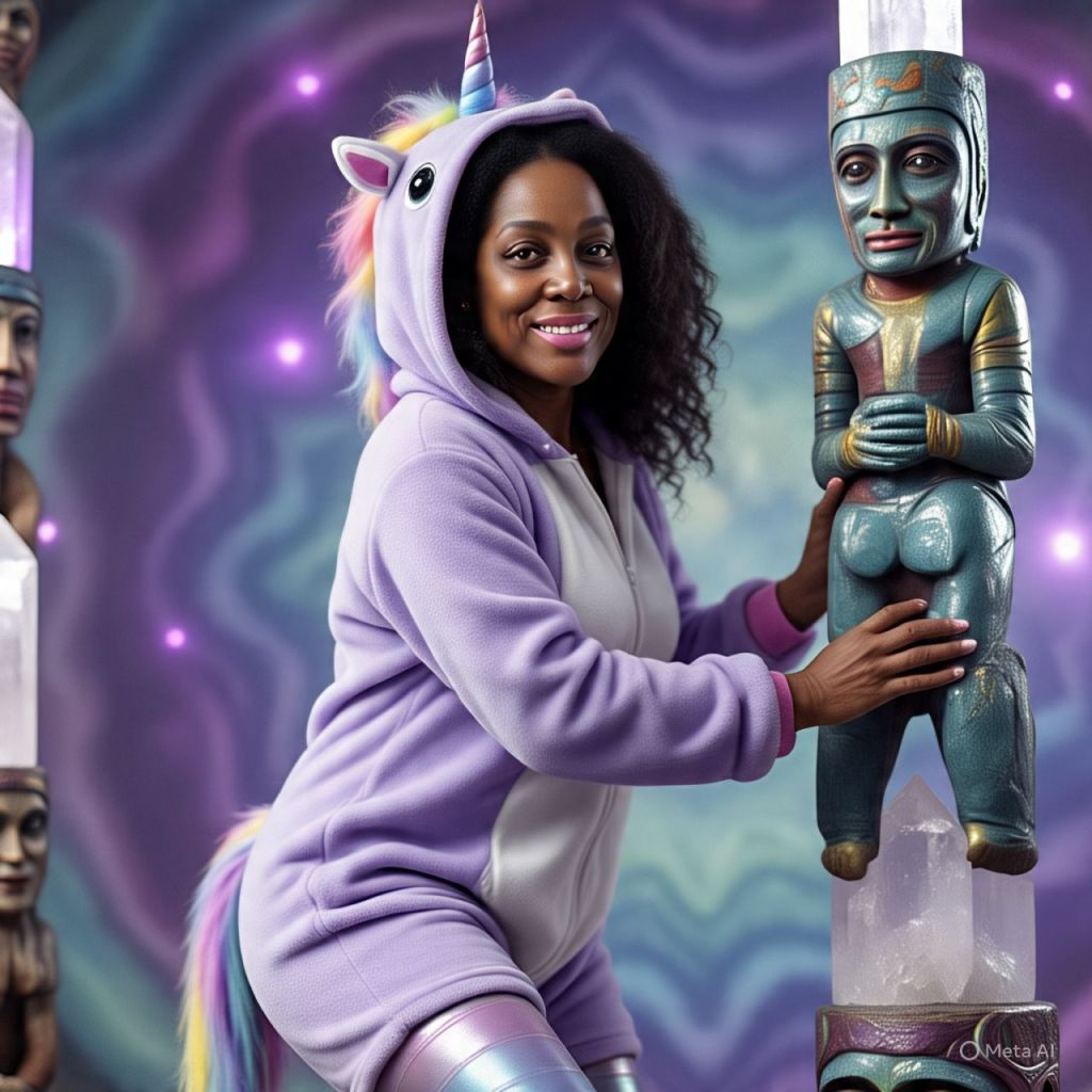 A local Amazonian goddess climbs to the top, twerks so strong that a waterfall starts flowing rainbow colors.